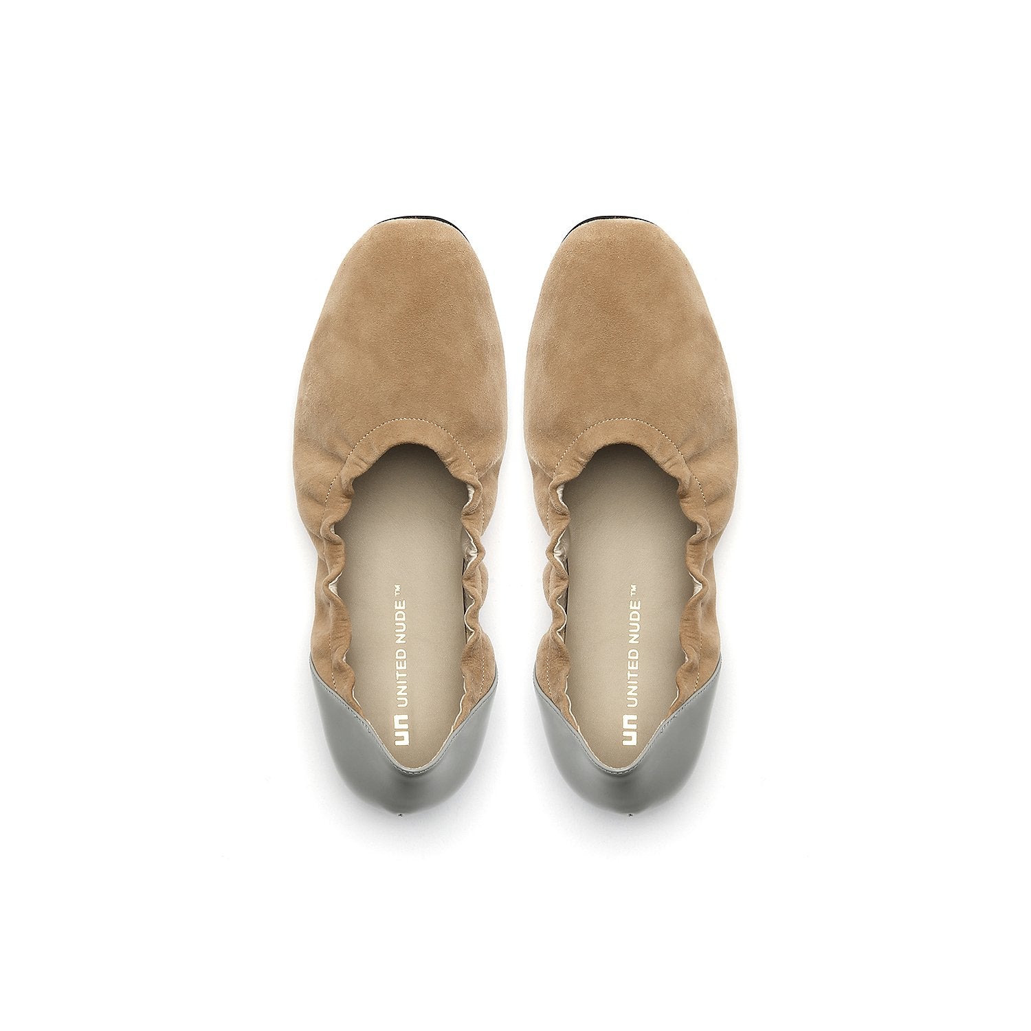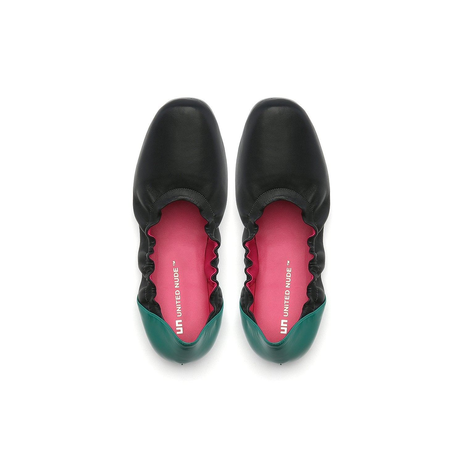The Delta Ballet is a squared toe, bicolor flat constructed with buttery-soft leather.