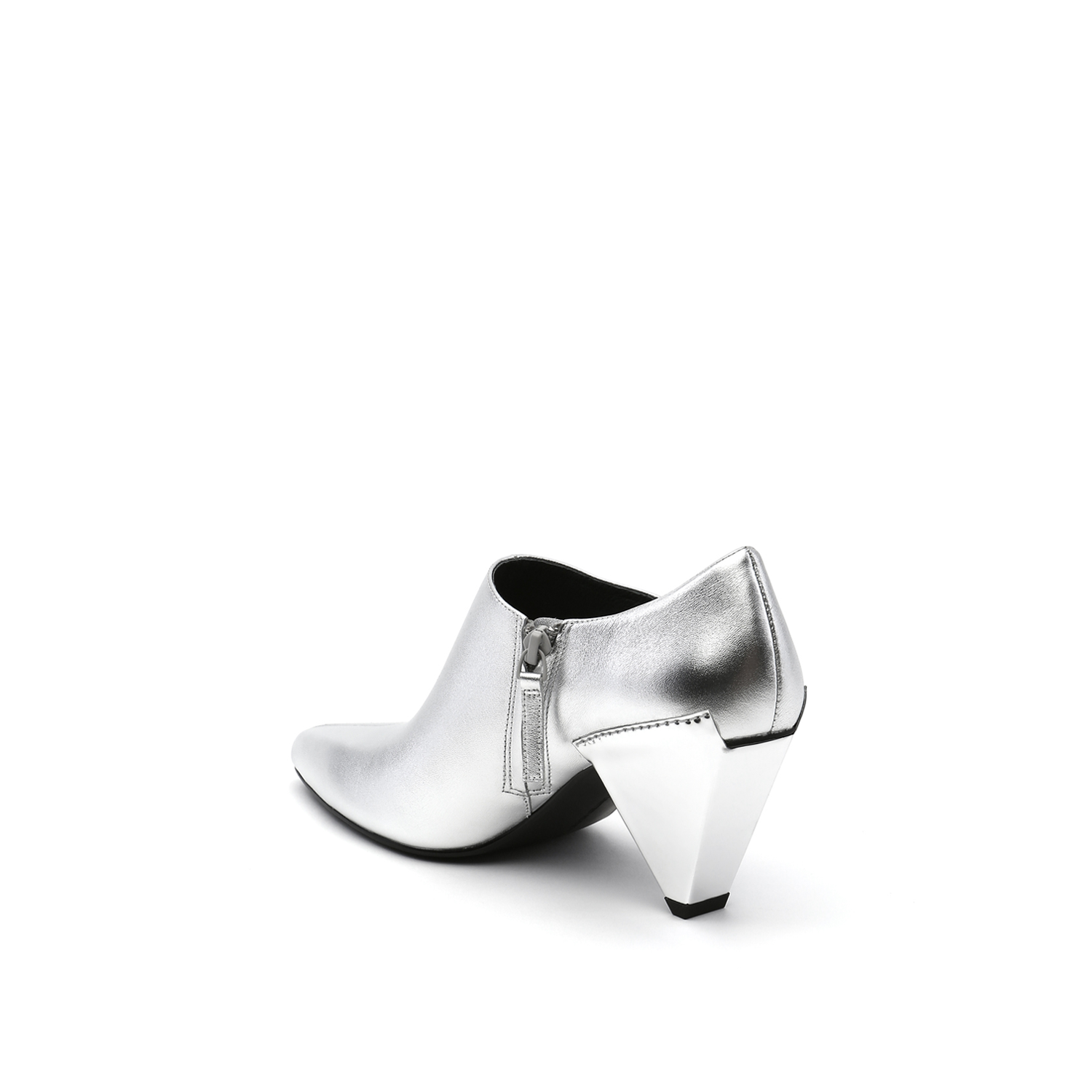 The Delta Pure Pump is a mid height heel with a low curved top line and statement triangular heel. This modernist shoe with a duo surface upper is finished with an inner nylon zip for easy on and off wear.