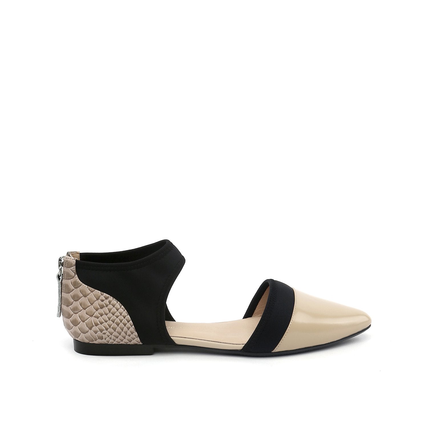 The Dorsy Lo is a pointy toe leather flat fitted with neoprene for support and comfort.