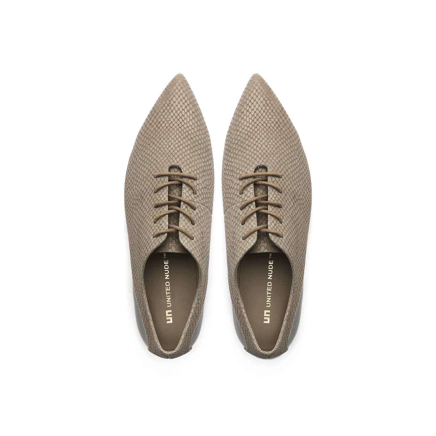 The Flow Oxford is a classic flat lace-up shoe with a contrasting metallic finish that adds contemporary appeal to this elegant style.