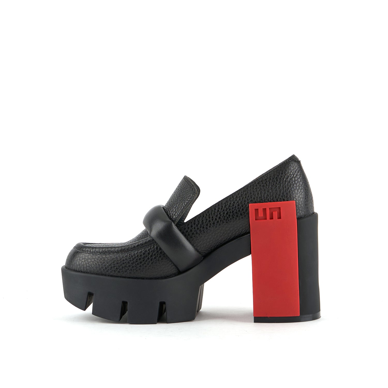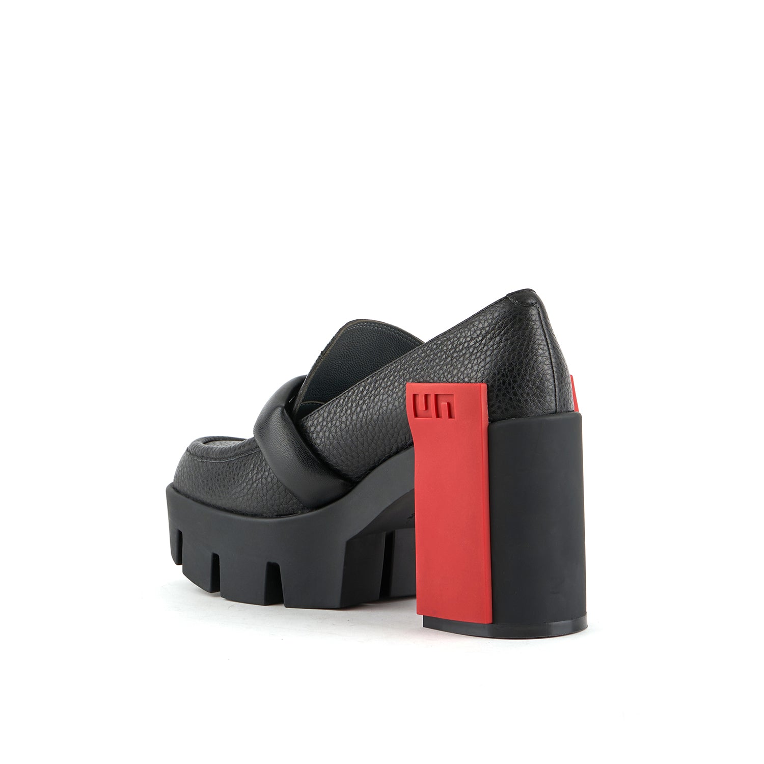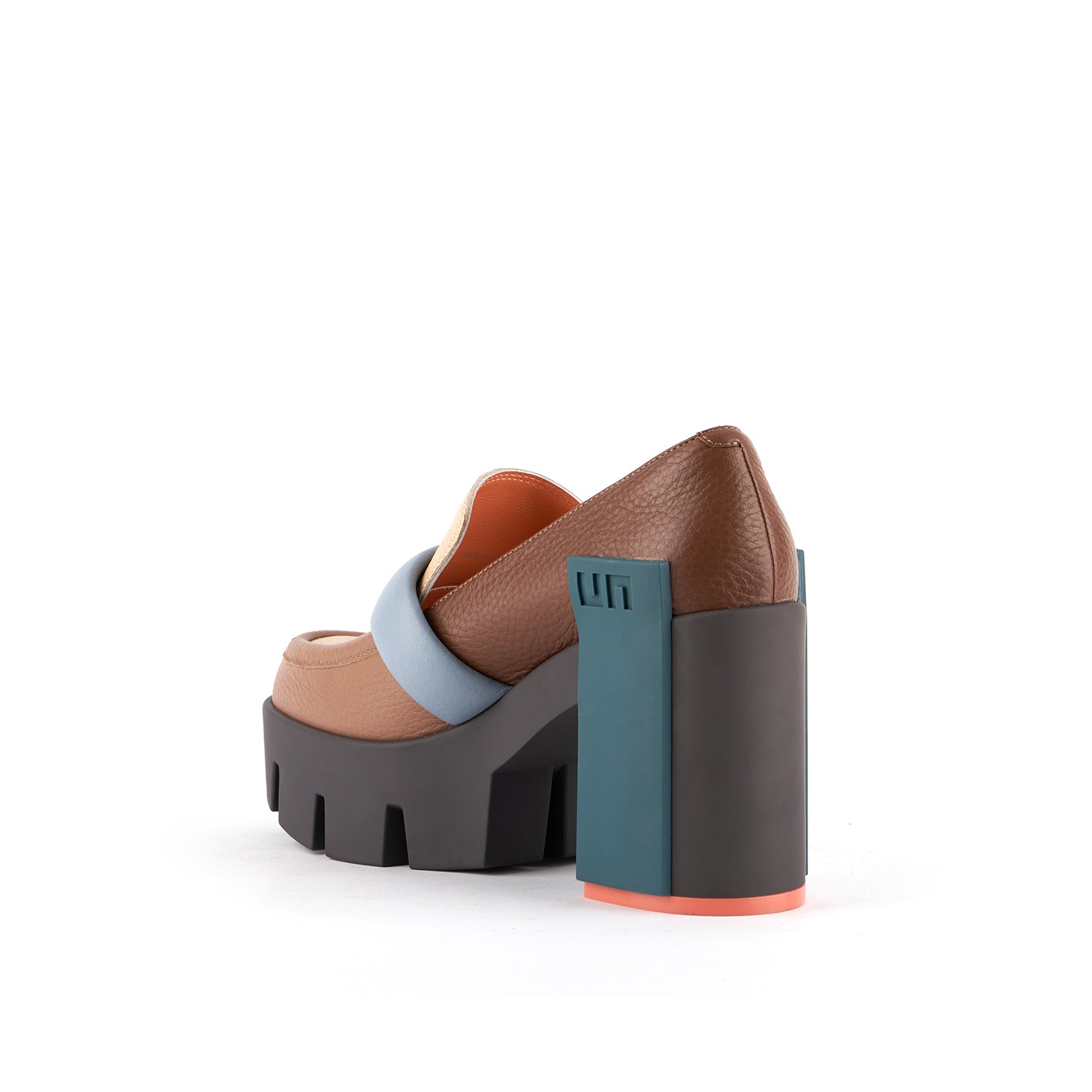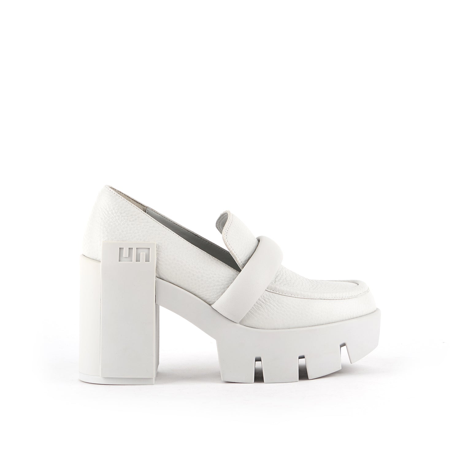 The Grip Loafer is an all-leather slip on shoe with a platform lift, a statement logo block, and a defining lug sole.