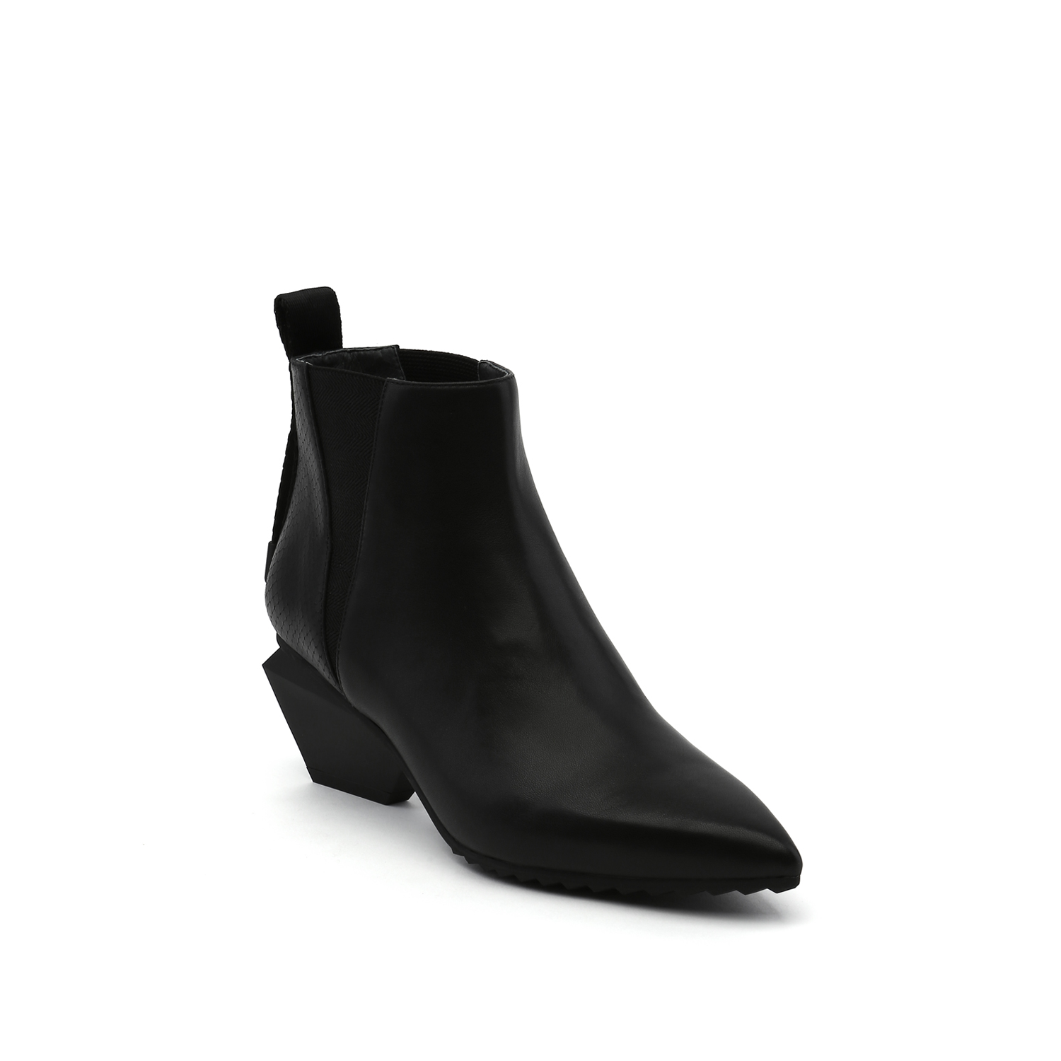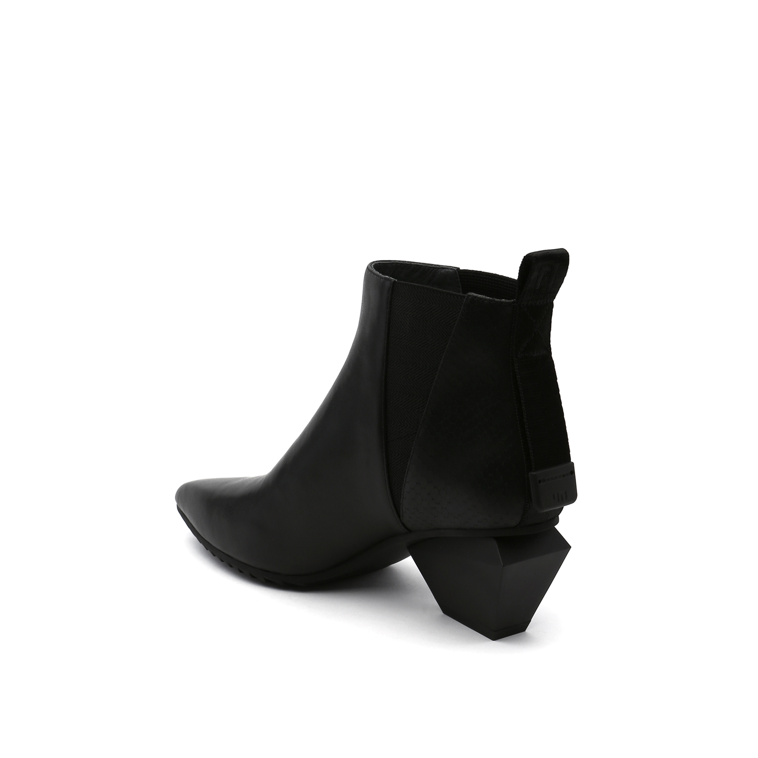 The Jacky Tek Bootie Mid is a mid heel pointy-toe bootie that boasts a statement faceted heel. Rear pull straps allow for easy on and off wear on this smart meets casual style.