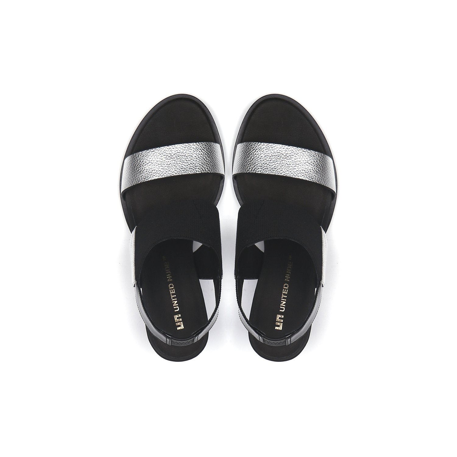 mid rise slingback black + silver top view