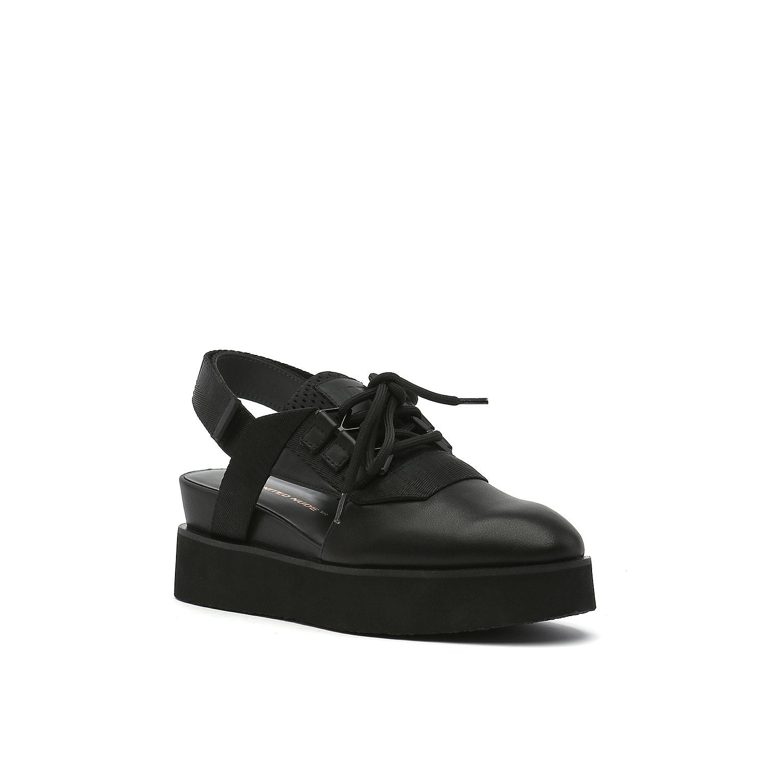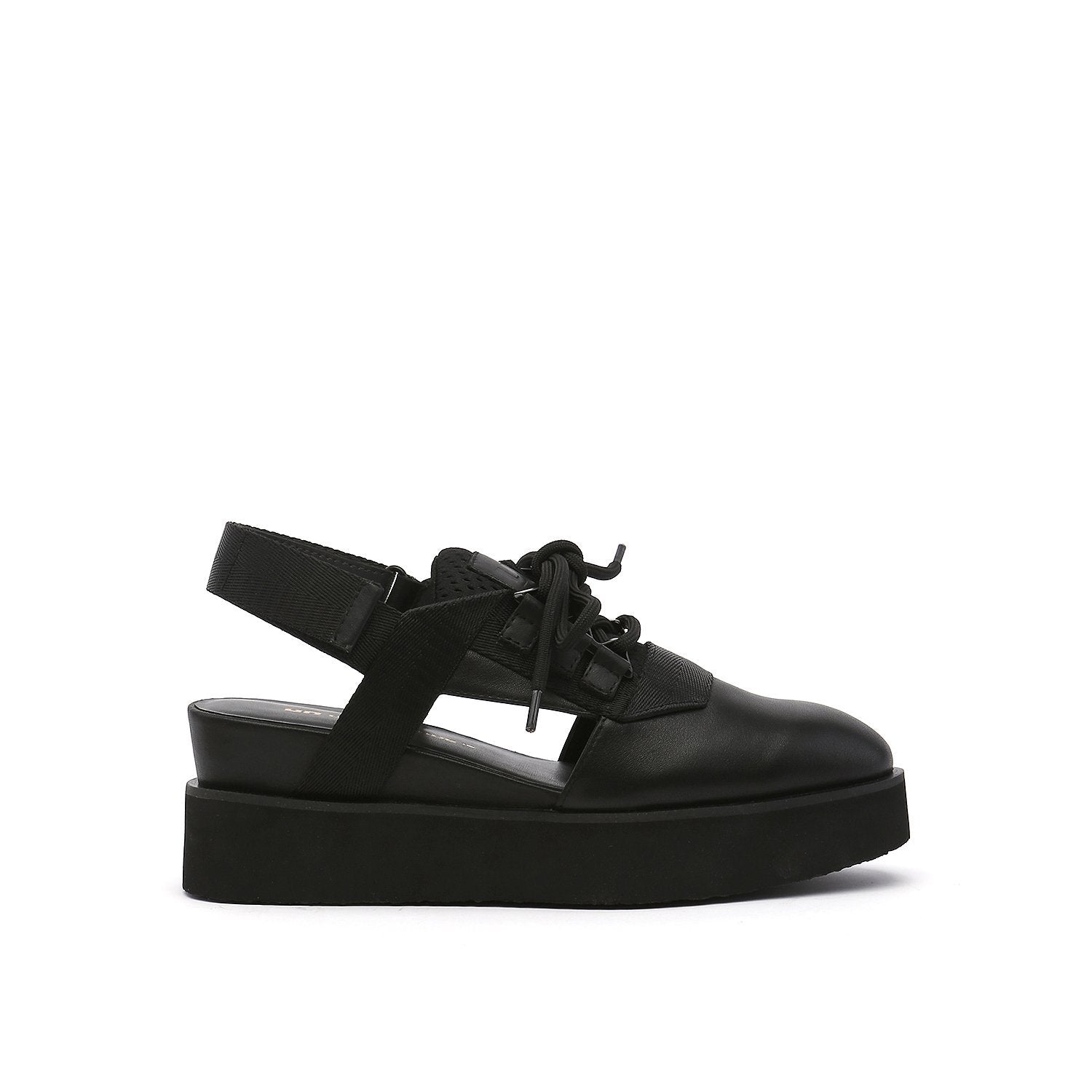 The Miku Sport Summer is a flatform cutout slip on with a cushioned tongue and adjustable slingback strap. This trans-seasonal favorite is given a sporty makeover with lacquered leather and flyknit fabric.