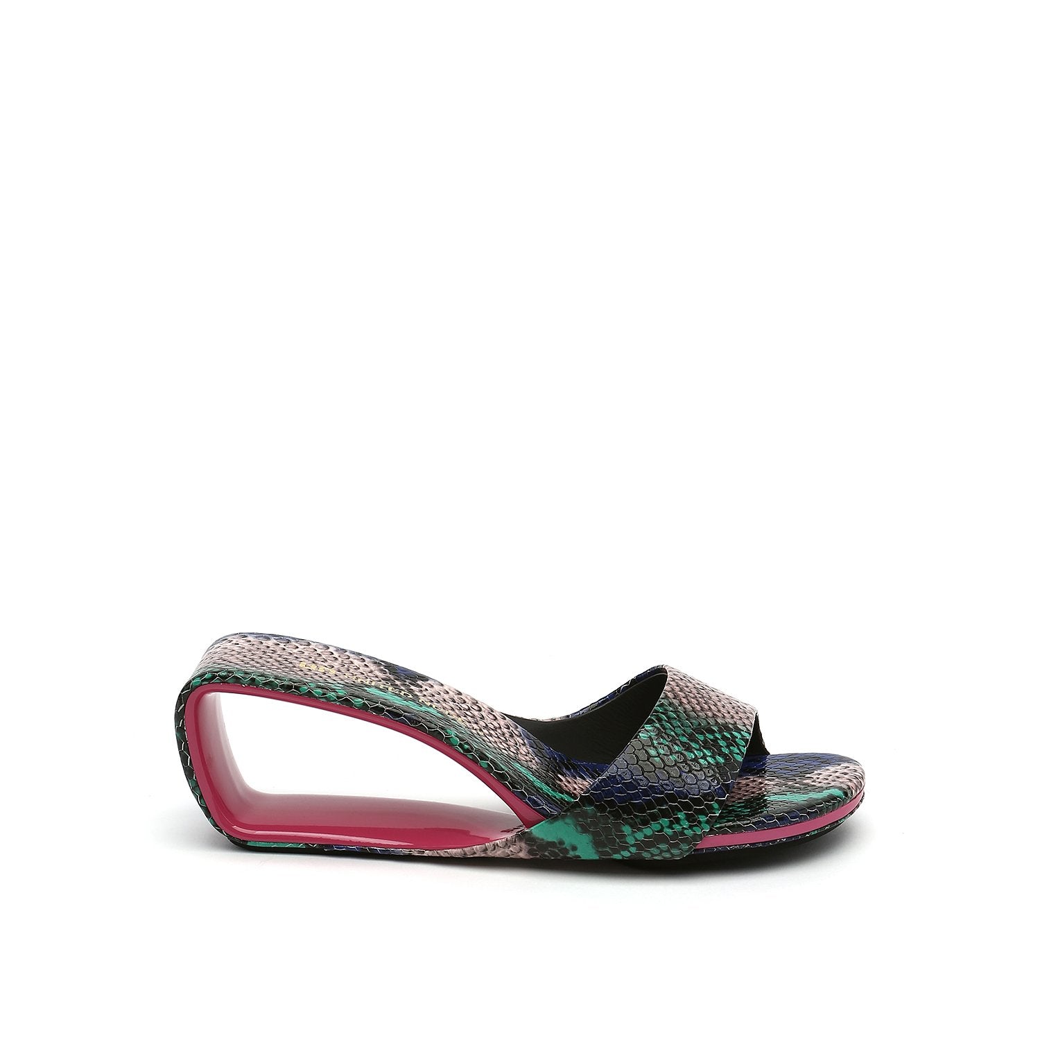 The Mobius Mid is a lightweight, open-wedge mid heel made from fiber-reinforced nylon. A single band forms the sole, heel, footbed and upper of the shoe. The Mobius is inspired by the phenomenon of the Möbius strip, a single-sided surface with no boundaries.