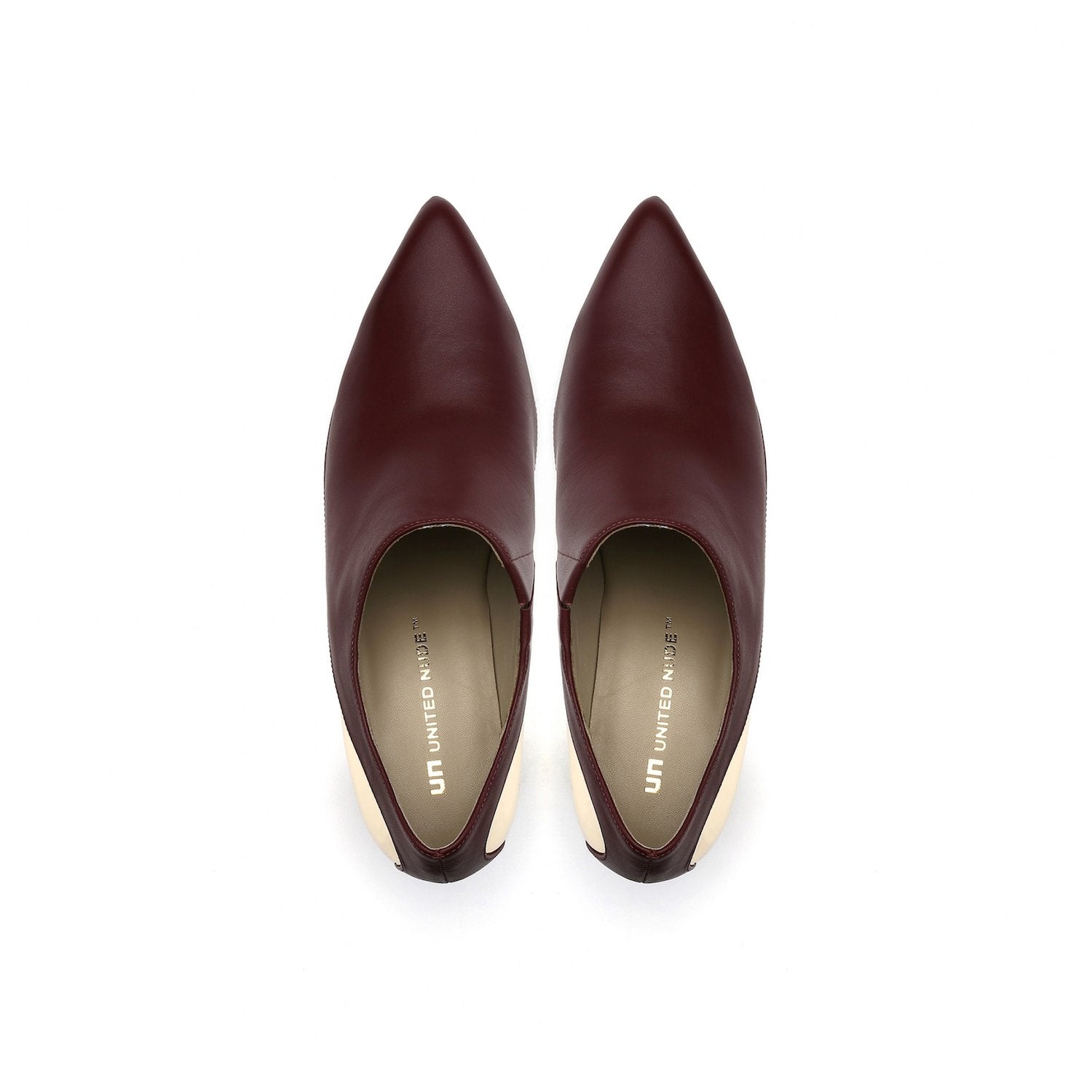 The Molten Flow Bootie Mid is a mid heel pointy-toe bootie with a curved top line and semi-chromed heel that seemingly contorts into an arching metallic panel.
