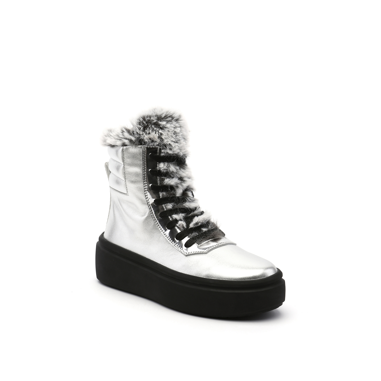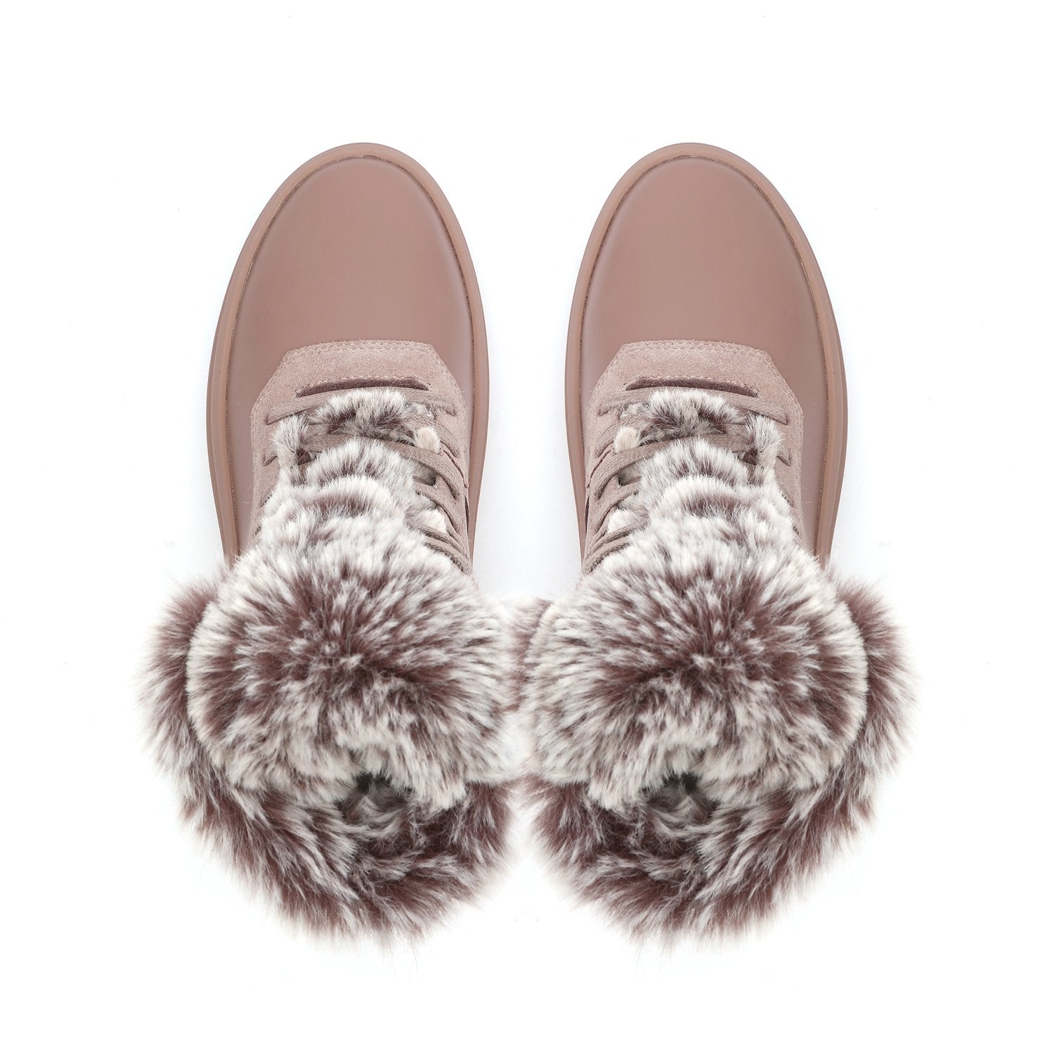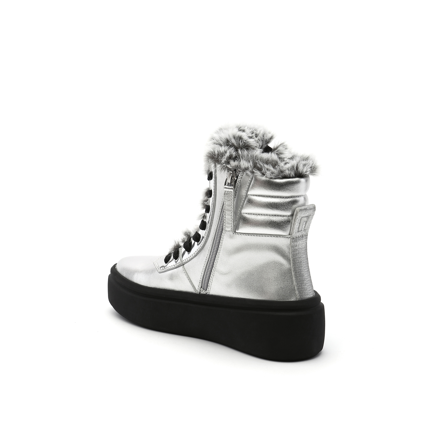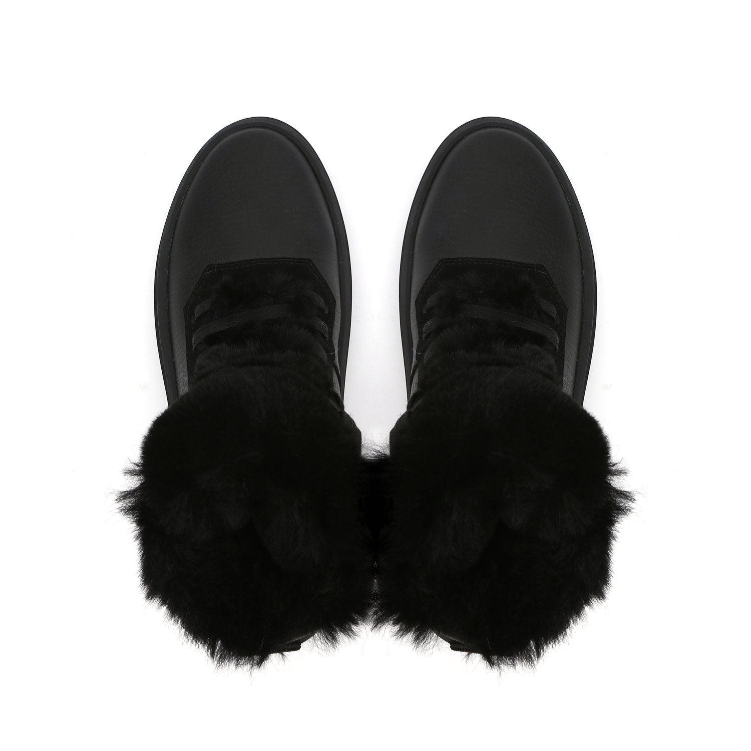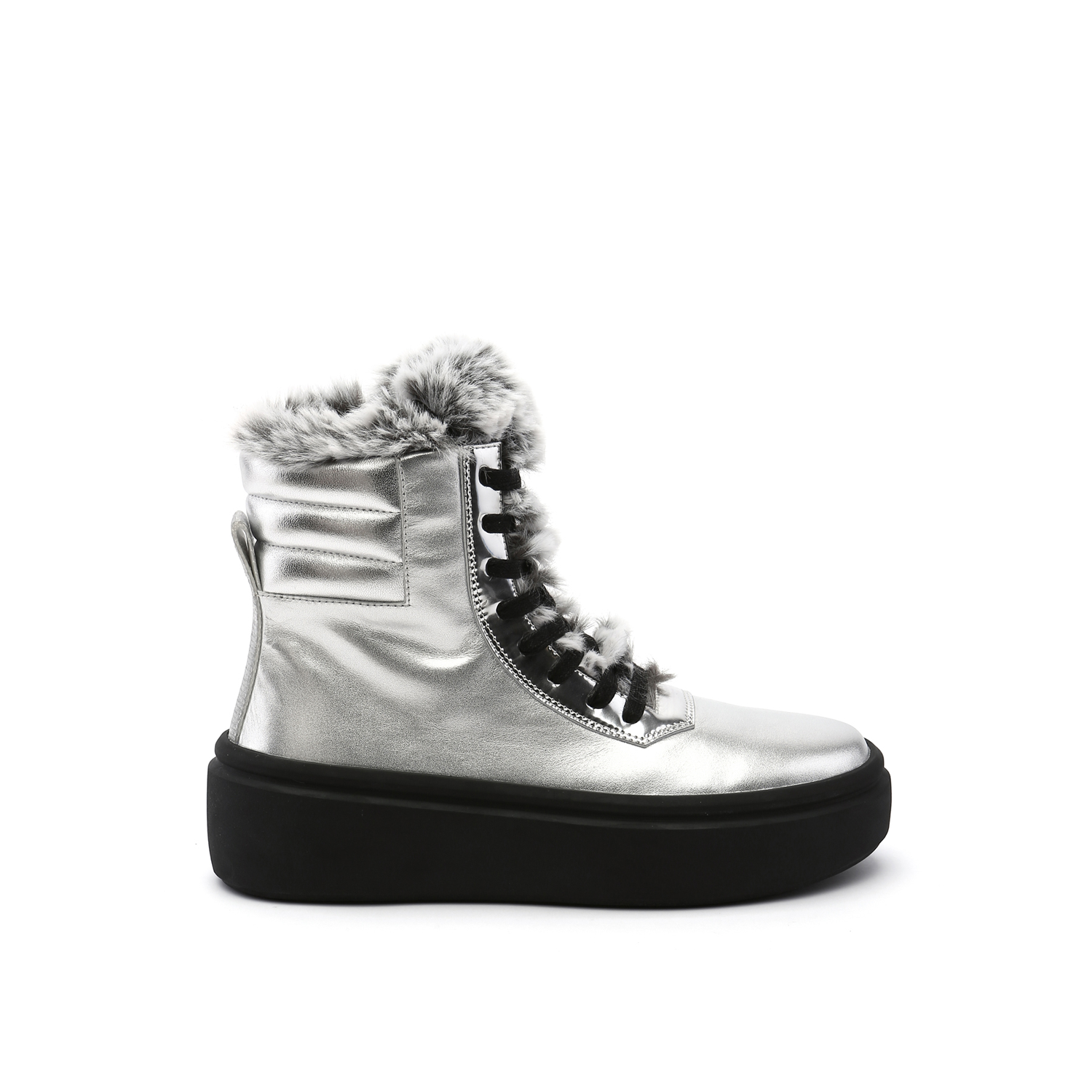 The Motto High Womens is a high top sneaker with a cozy faux fur tongue and leather upper that sit on a flexible rubber sole with a slight lift. This lace-up sneaker is perfect for a casual cold weather look.