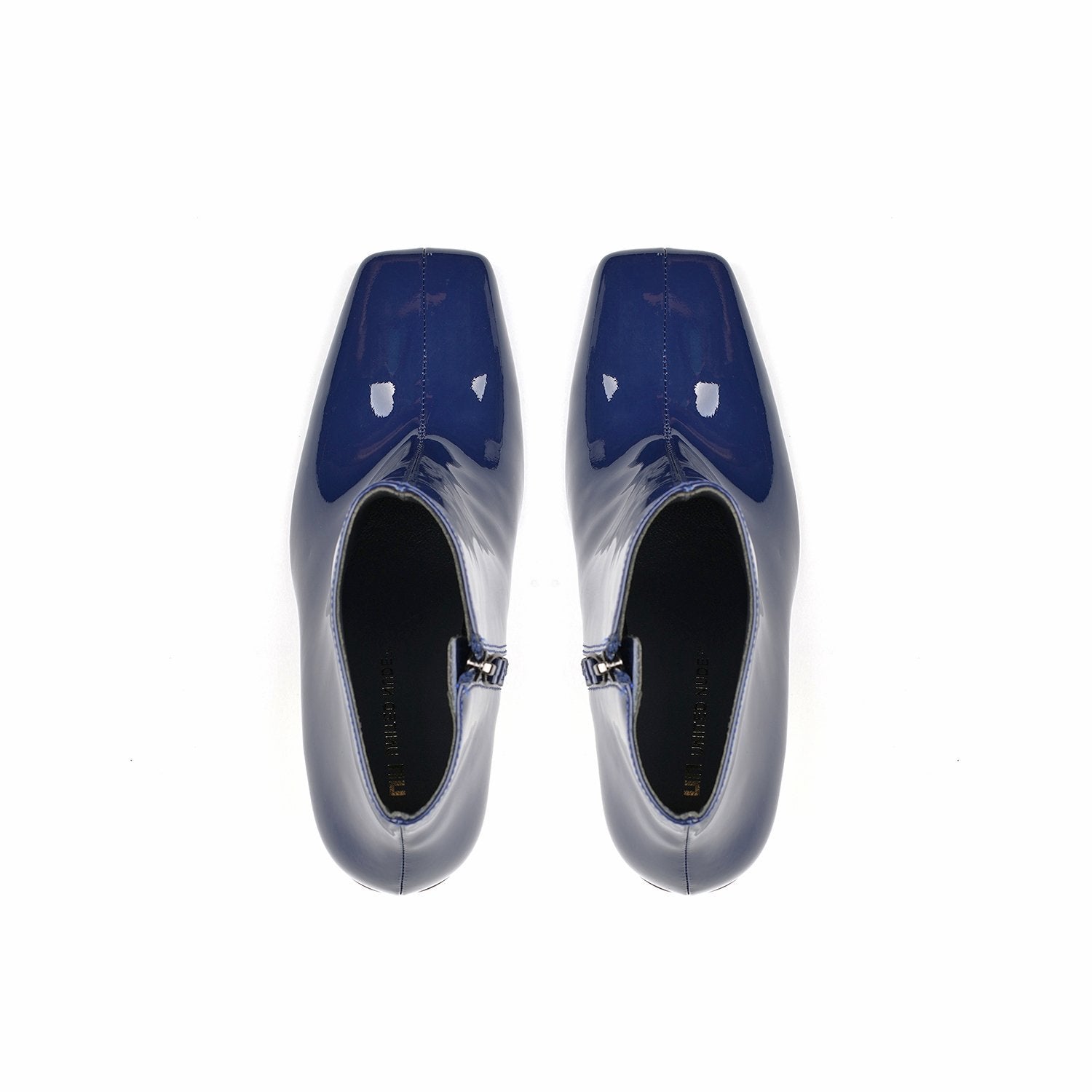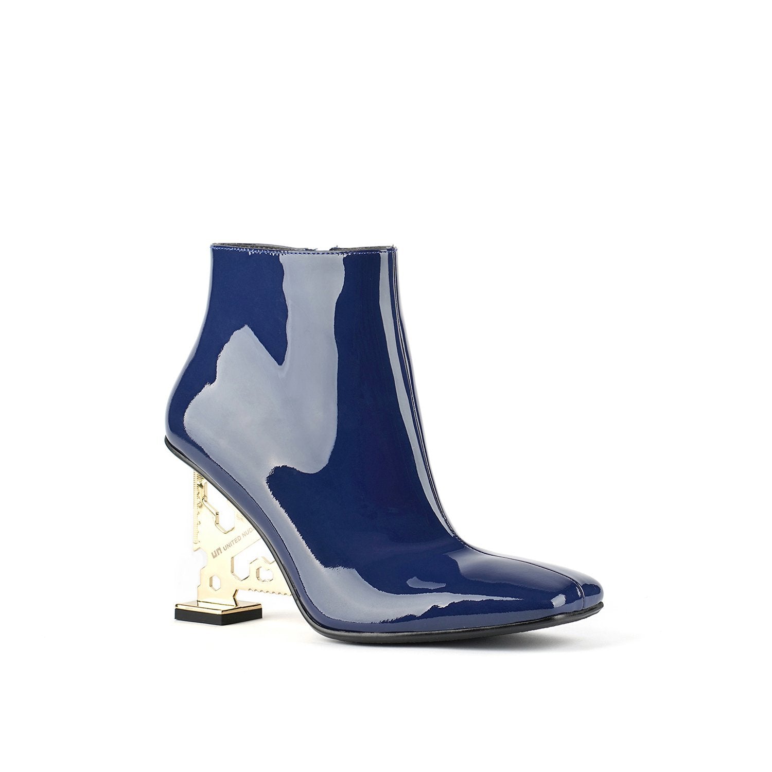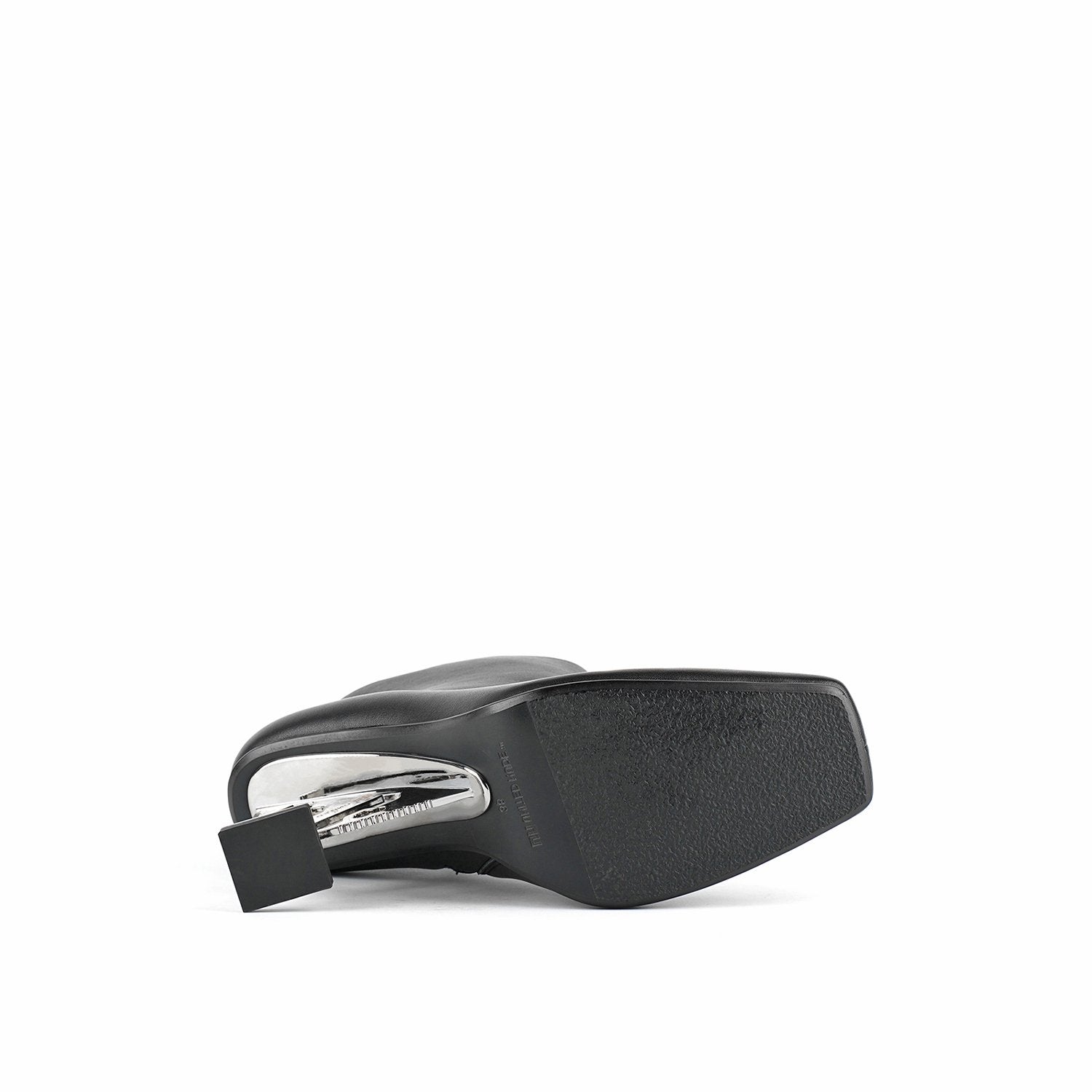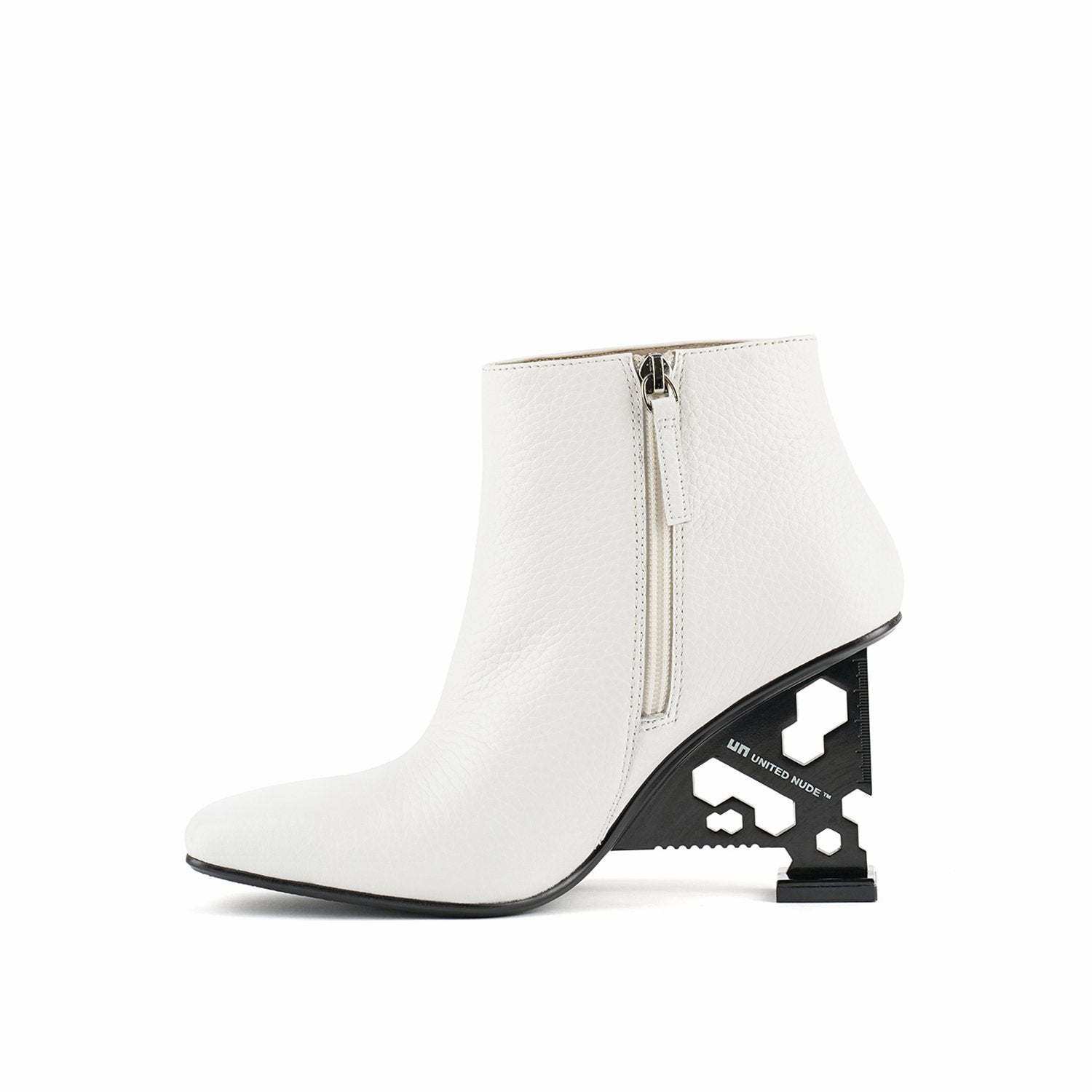 The Tool is a pointy toe bootie. The super sleek, minimal upper is lifted by a statement 45-degree metal heel.