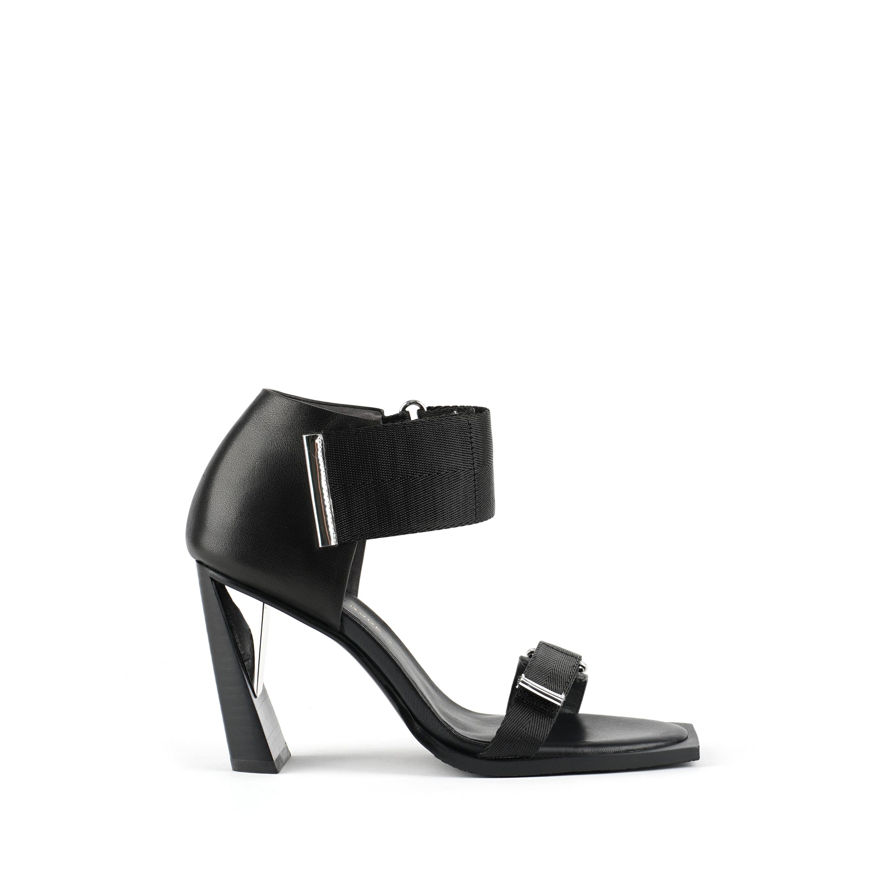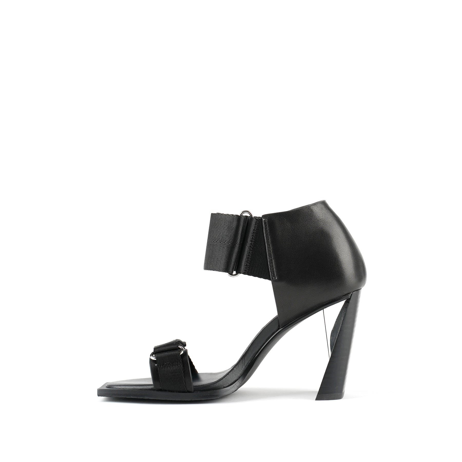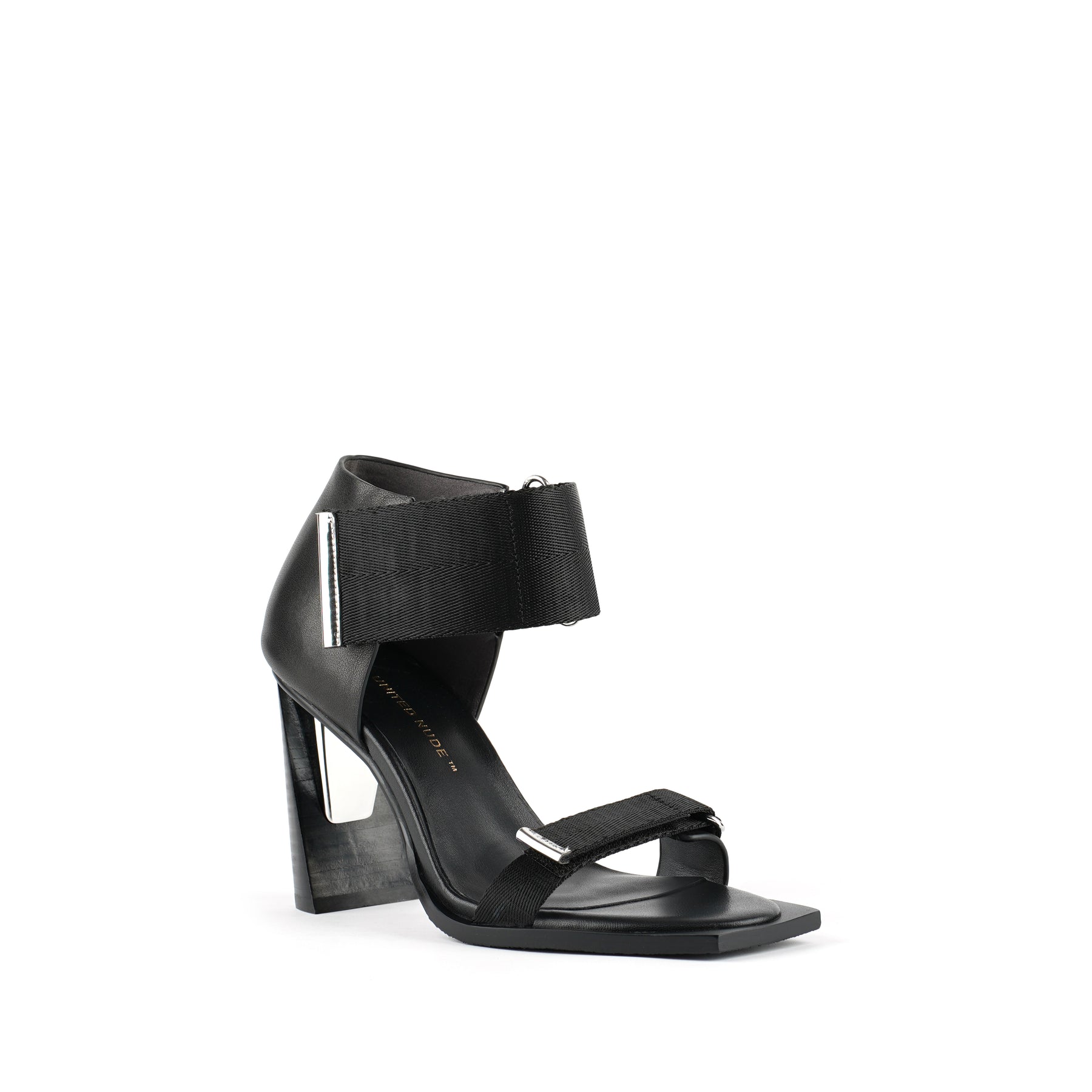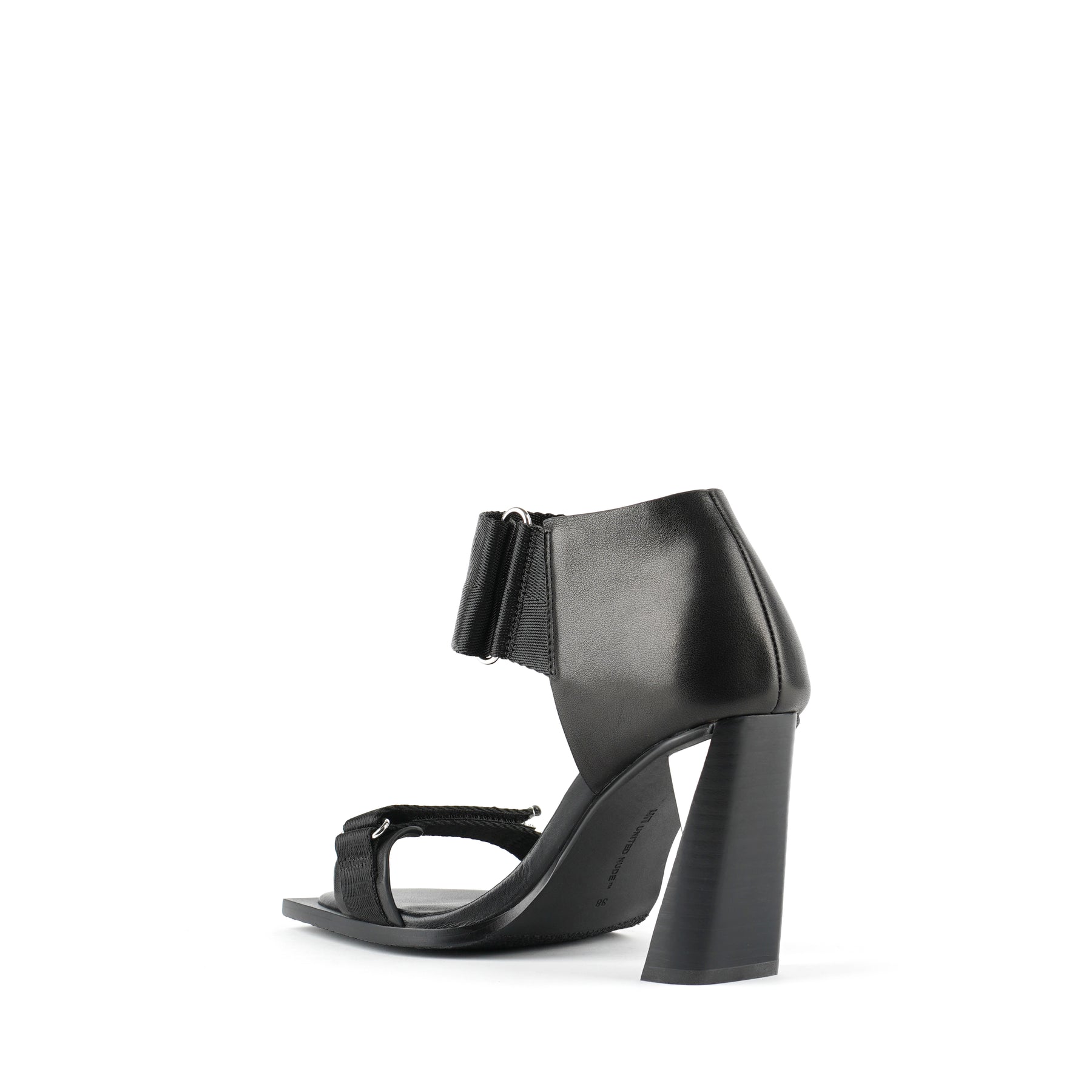 The Vita Sandal Hi is a high heel sandal with a leather wrapped heel, a square toe and sleek metallic accents. Two adjustable nylon straps with hook and loop velcro closures allow for easy on and off wear.