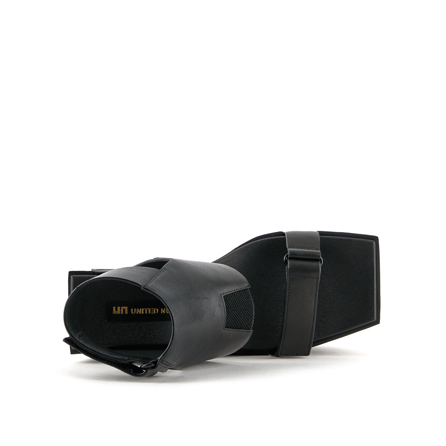 The Brutt Sandal is a bold expression of modern luxury, merging sculptural architecture with refined elegance. Defined by a sharp square toe and a rebellious cut-out leather upper, it delivers striking visual presence while adjustable ankle straps ensure a composed, effortless fit. A statement wedge designed to elevate both silhouette and style.
