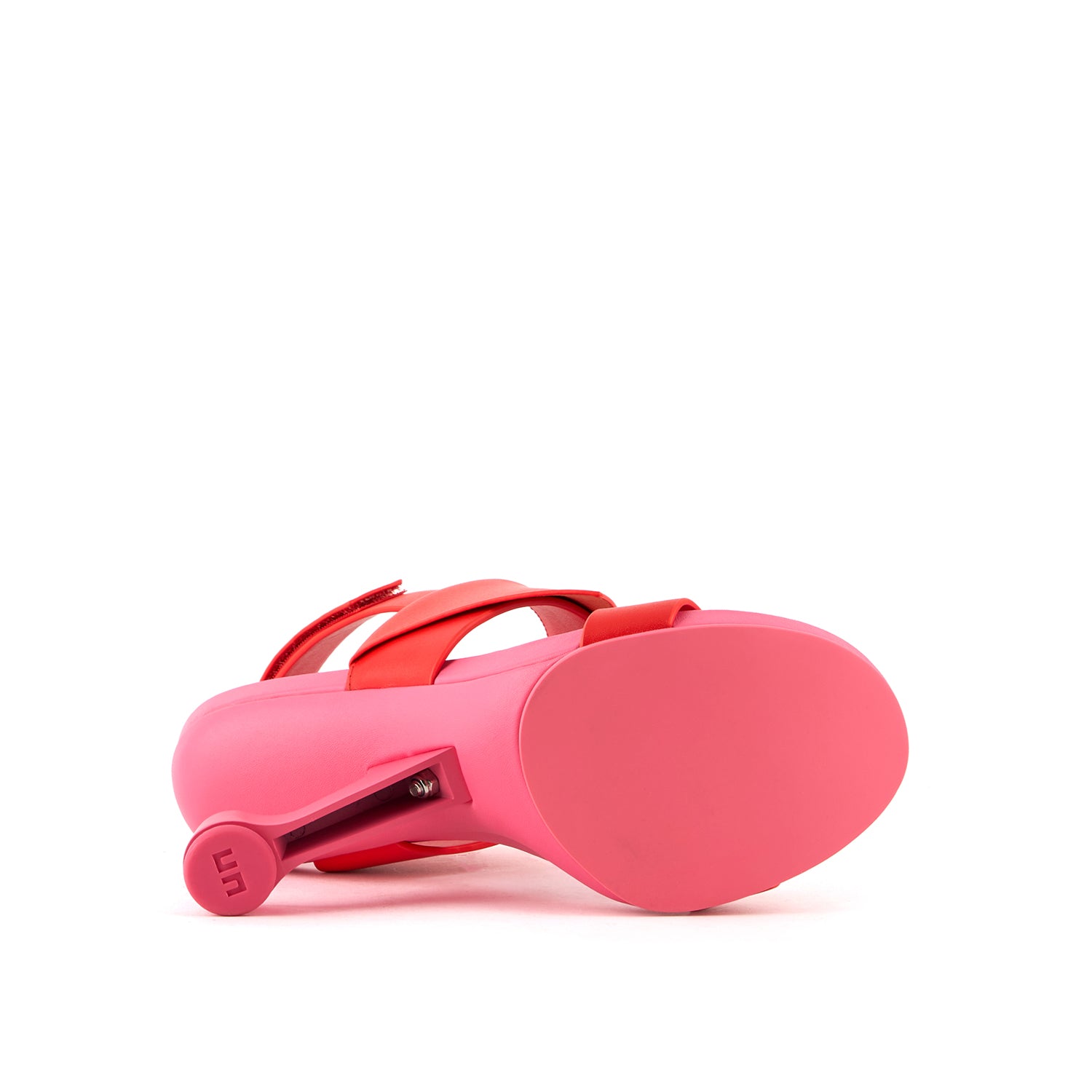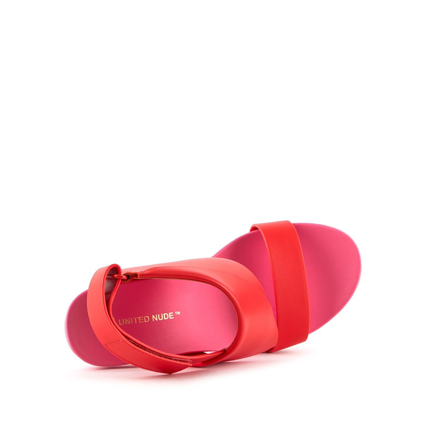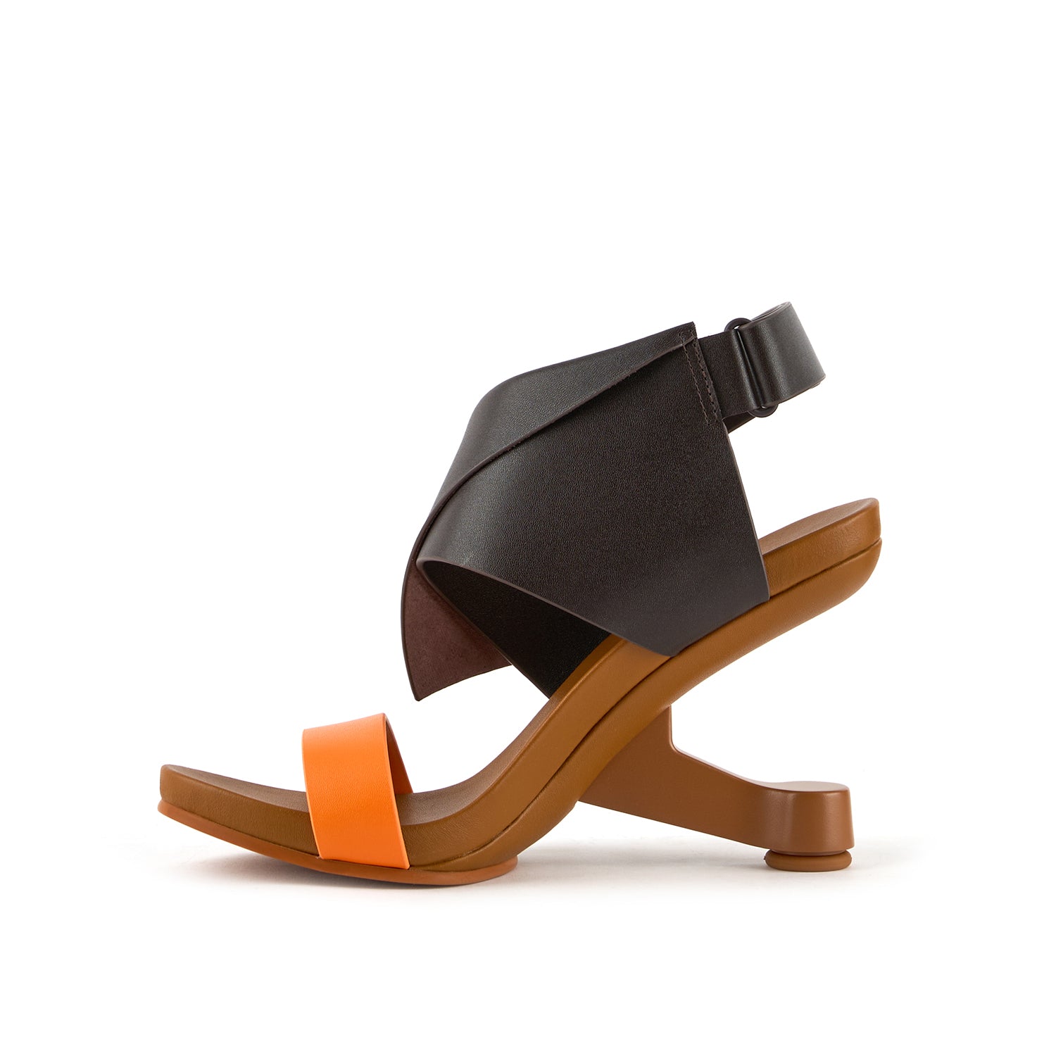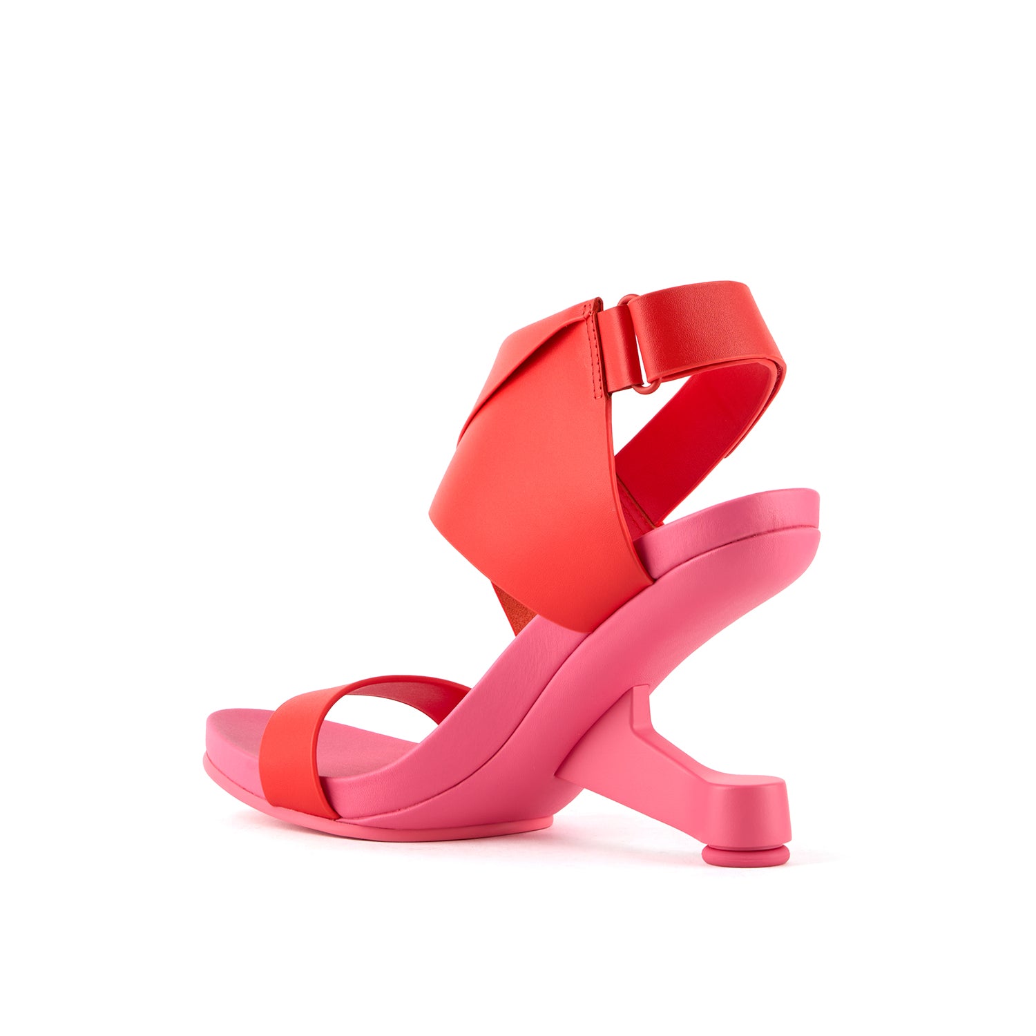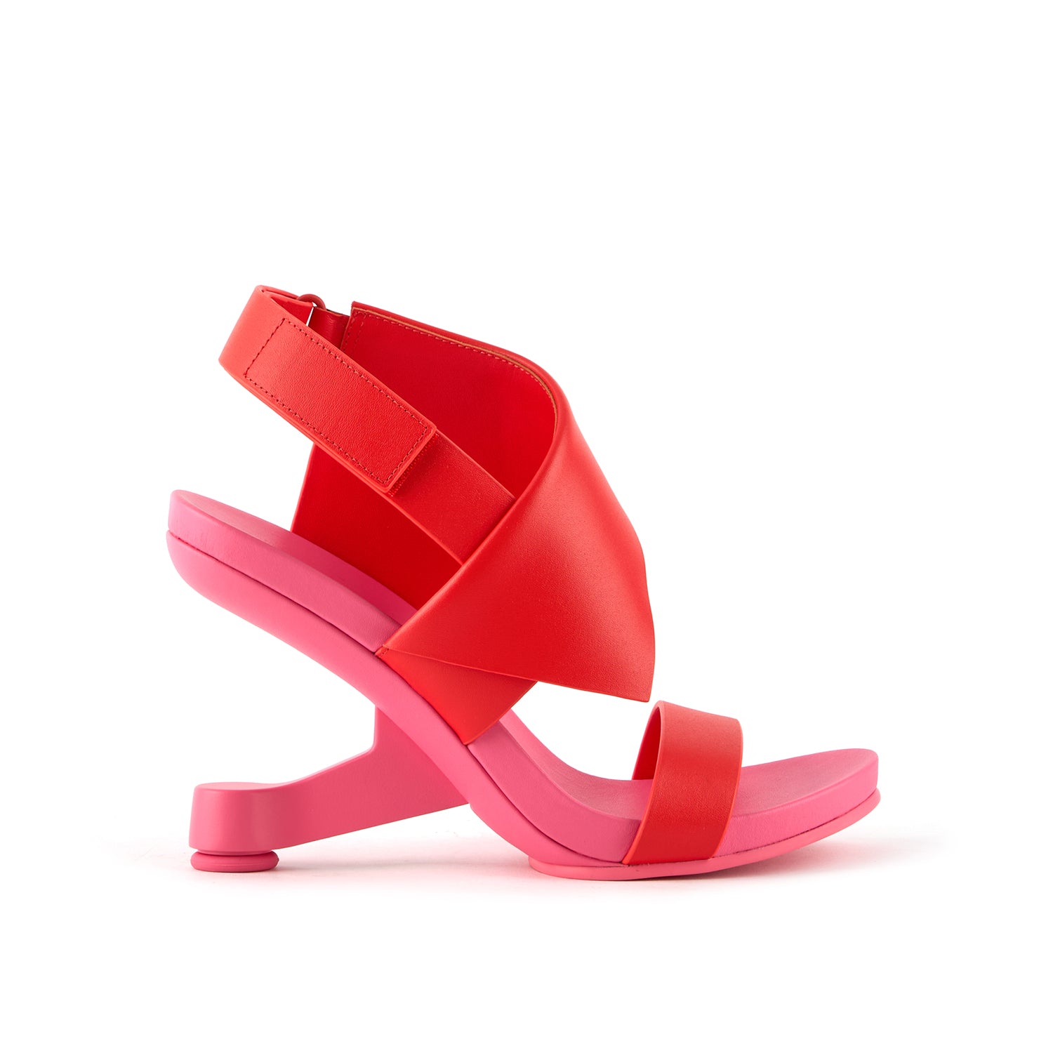 The Eamz Polo is a high heel sandal featuring an overlapping upper, an adjustable ankle strap, and the iconic United Nude Eamz heel. The Eamz heel is inspired by the sleek, modern aesthetic and innovative use of materials found in Charles and Ray Eames' iconic designs. Its distinctive, aluminum-casted structure creates a floating effect that makes the wearer appear suspended above the ground.