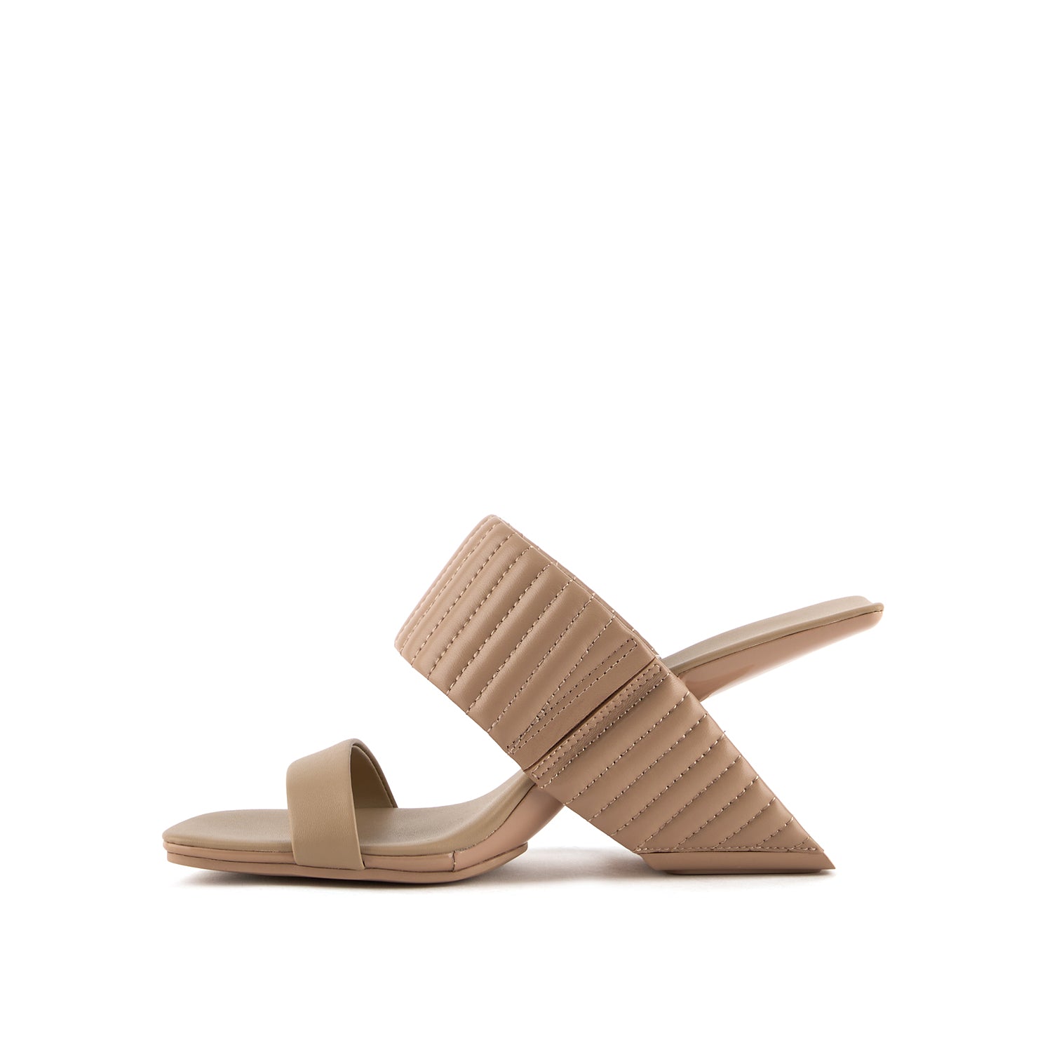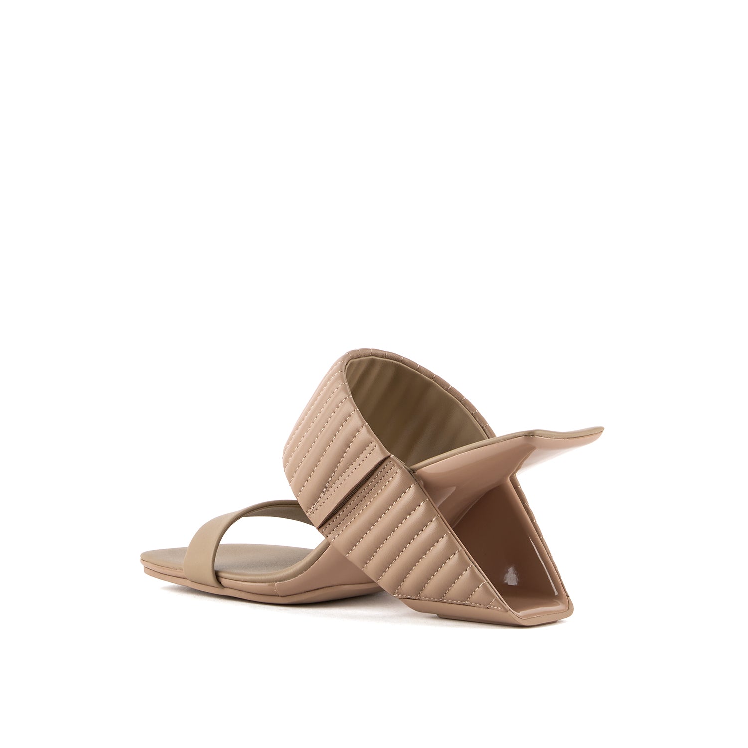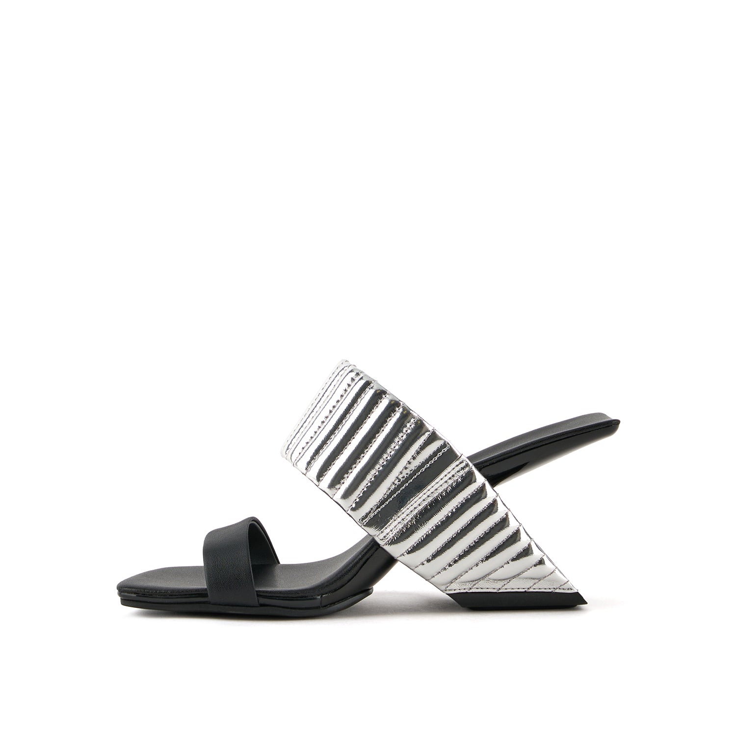 Introduced in 2004, the Loop Hi returns with elevated textural appeal. United Nude's iconic Loop silhouette features a floating leather footbed that slips through a loop, functioning as both the heel and the upper. The molded leather footbed is supported by a sturdy fiber-reinforced nylon heel, and hidden elastics in the top strap ensure a secure and comfortable fit. The heel forms a striking cantilevered architectural structure, adding a unique and futuristic element to the design.