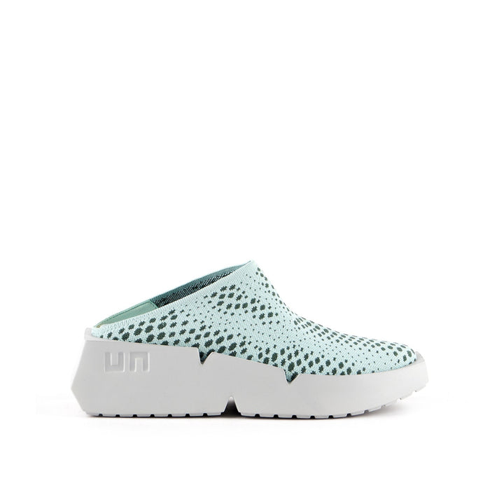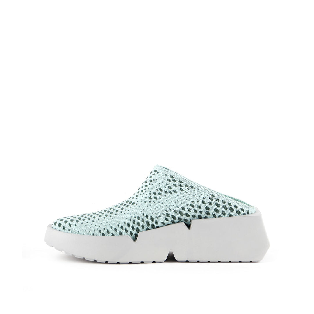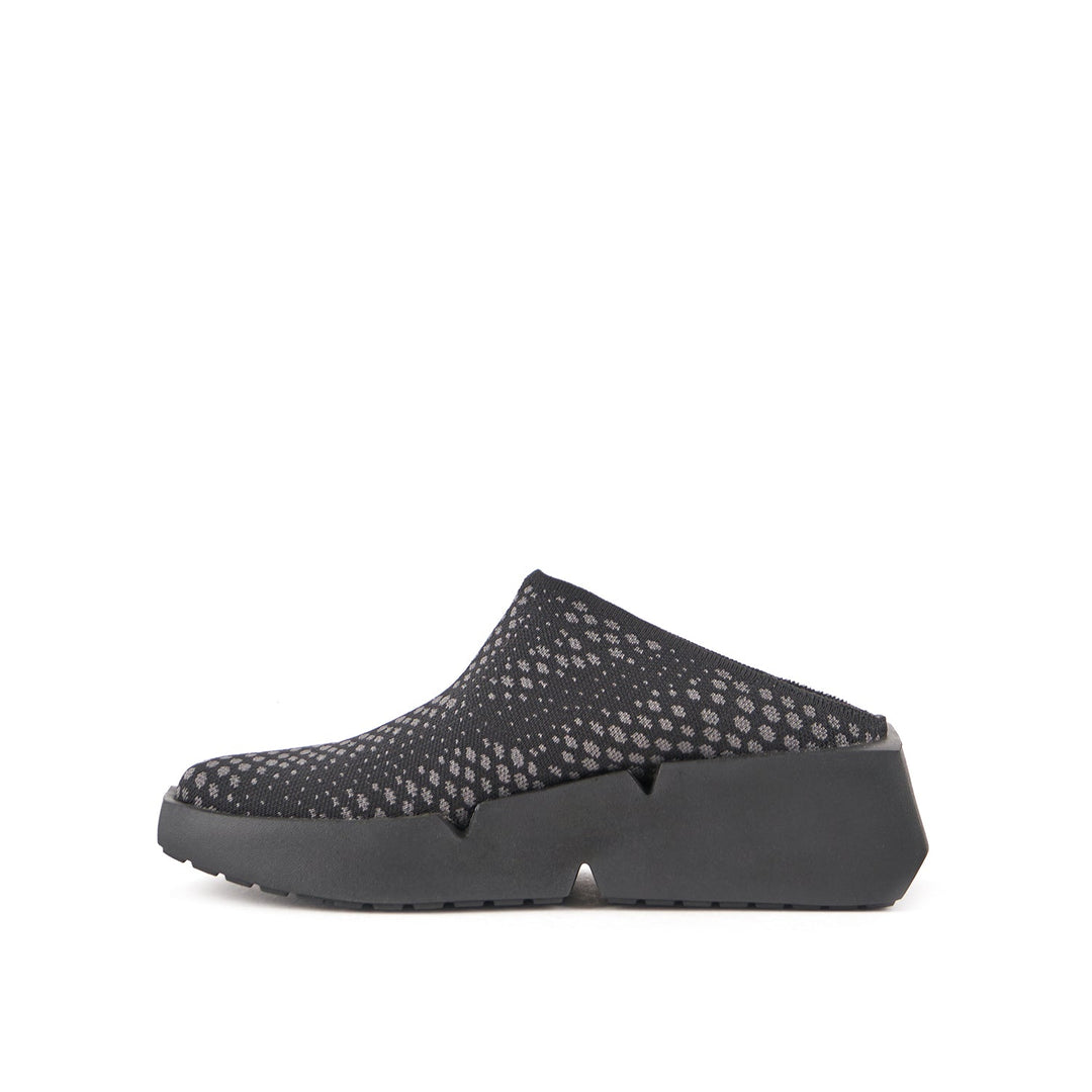 The Mega Mule is a slip-on shoe with a sporty twist on the classic mule silhouette. It features a stretchy graphic woven sock upper and a lightweight rubber outsole with a distinct shape.