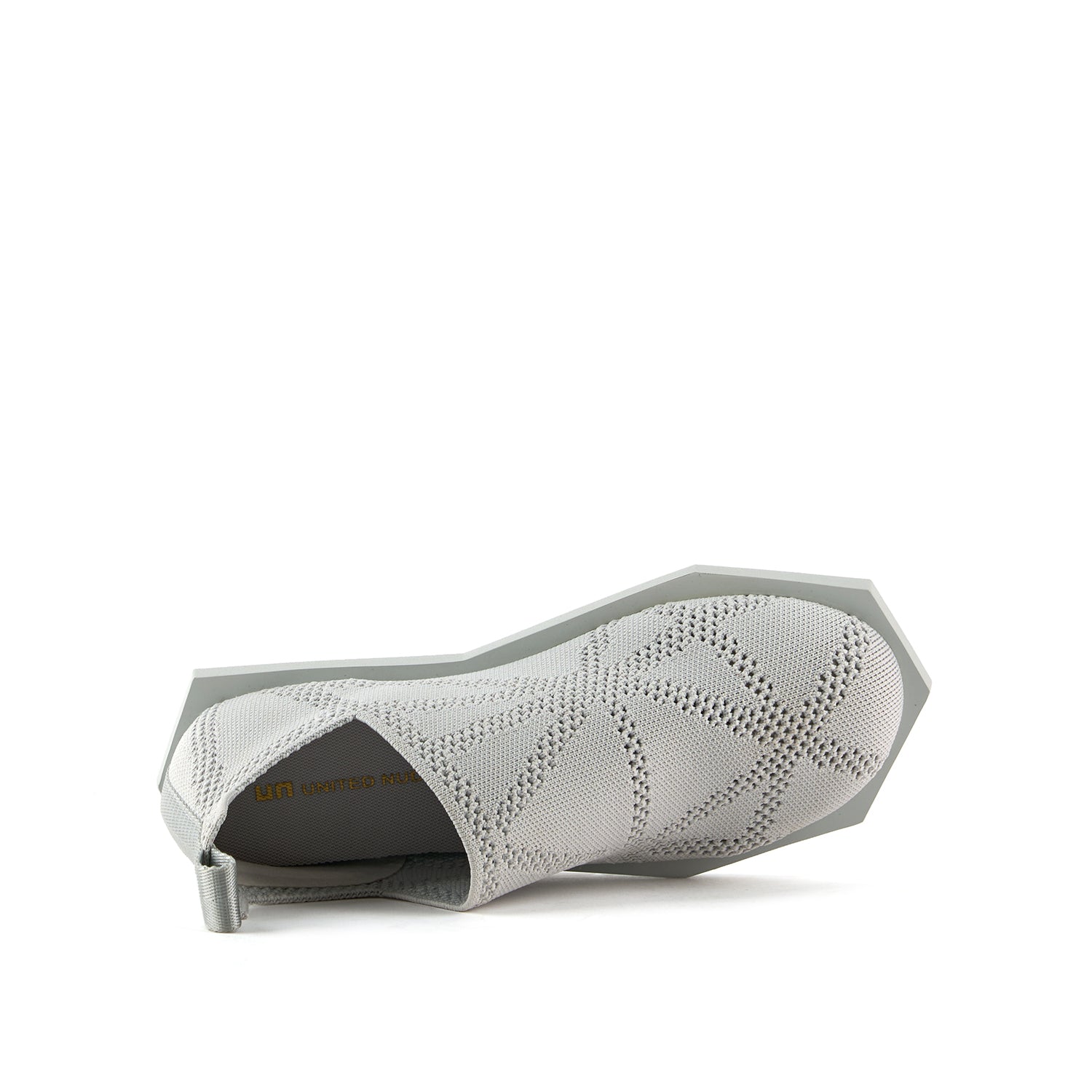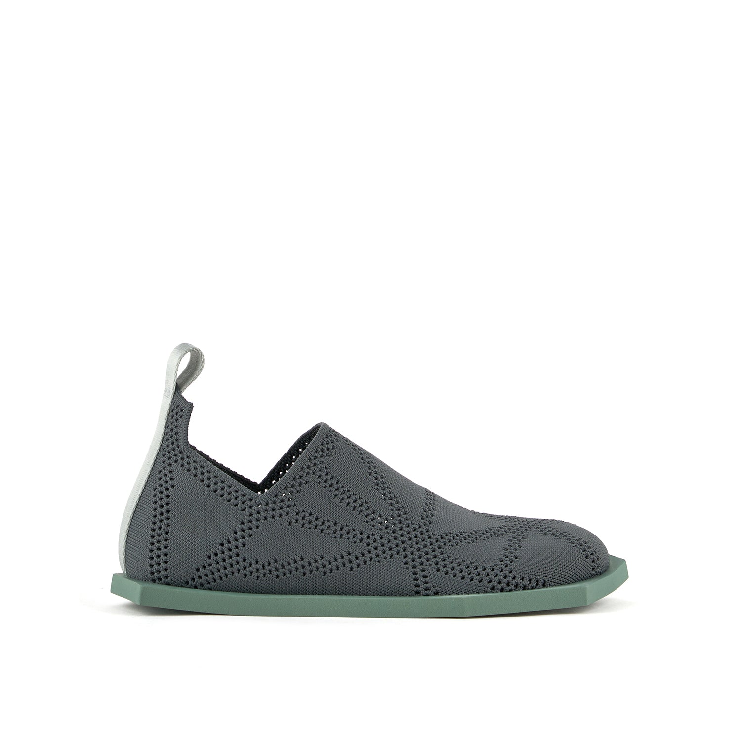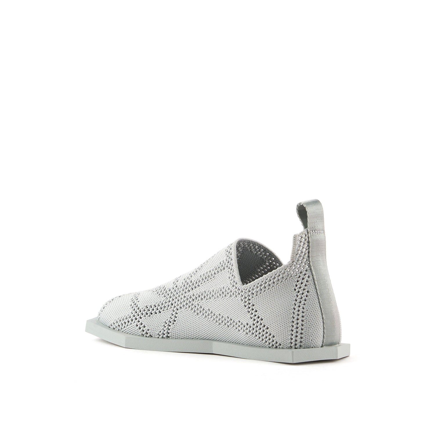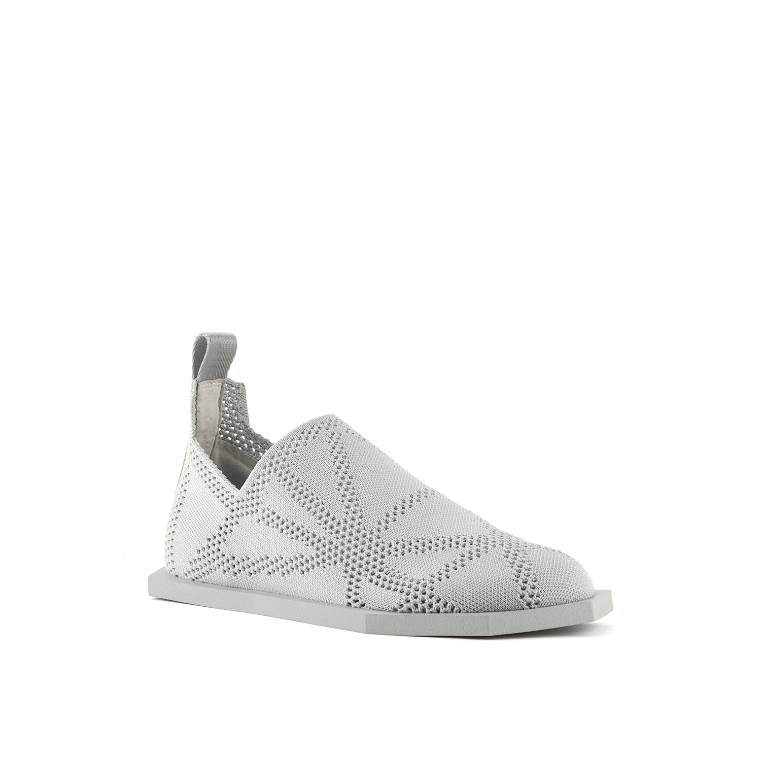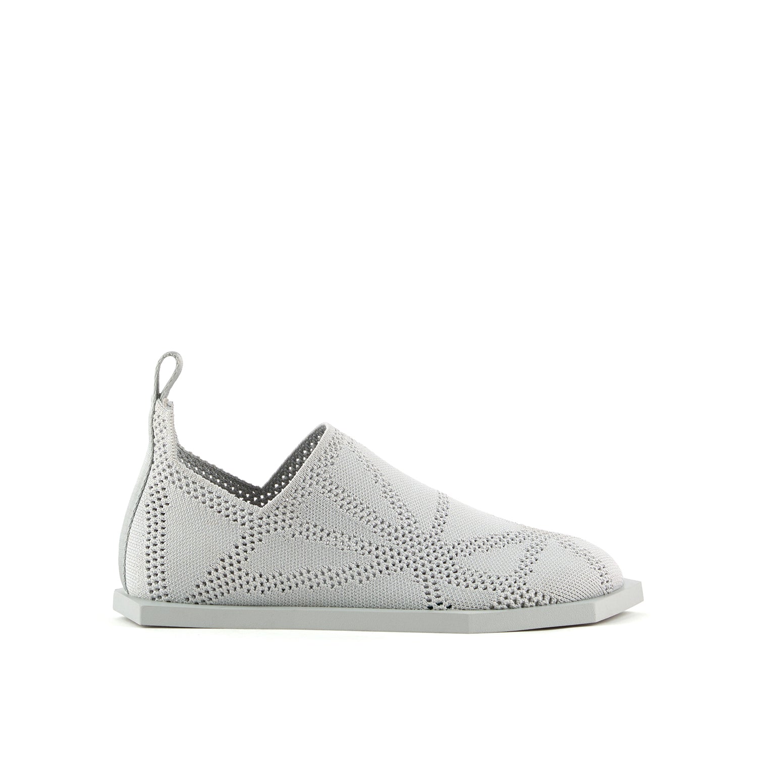 The Poly Fabric Lo is a unisex flat with a stretch-knit woven sock upper featuring a subtle geometric pattern and a lightweight, flexible rubber outsole.