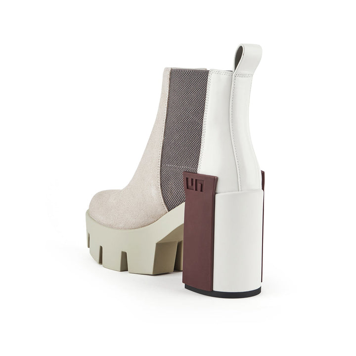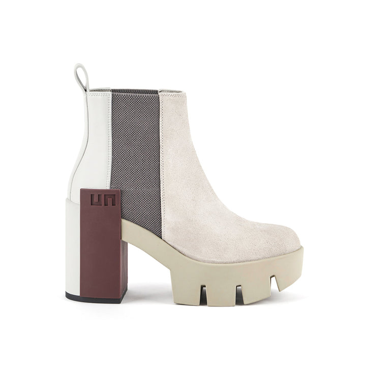 The Grip Chelsea II is a leather and elastic pull on boot with a platform lift, a statement logo block, and a defining lug sole.
