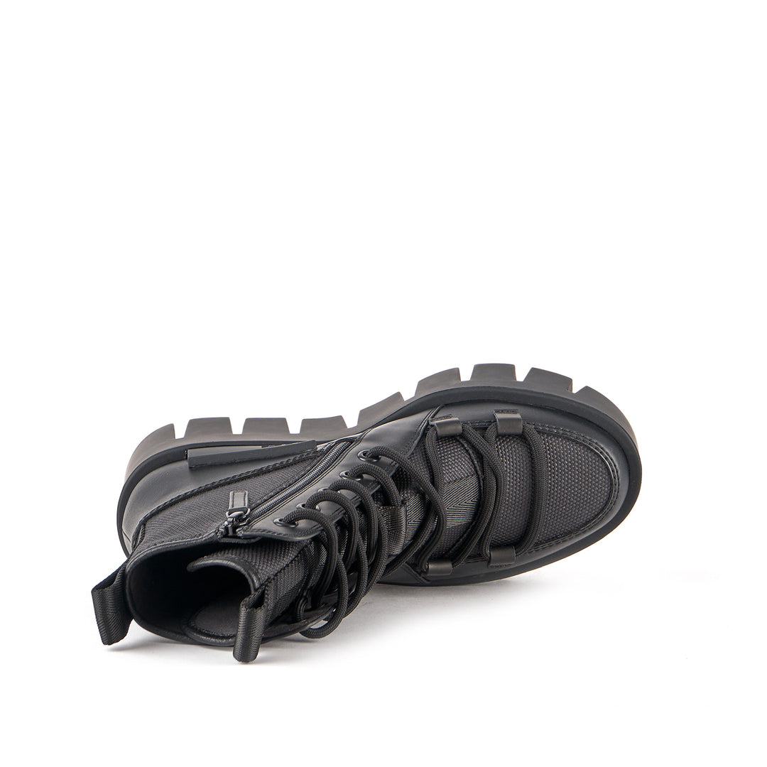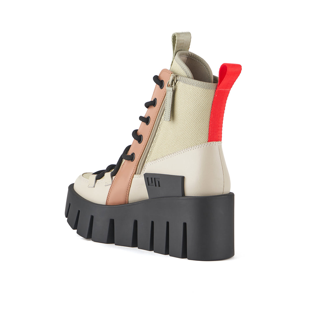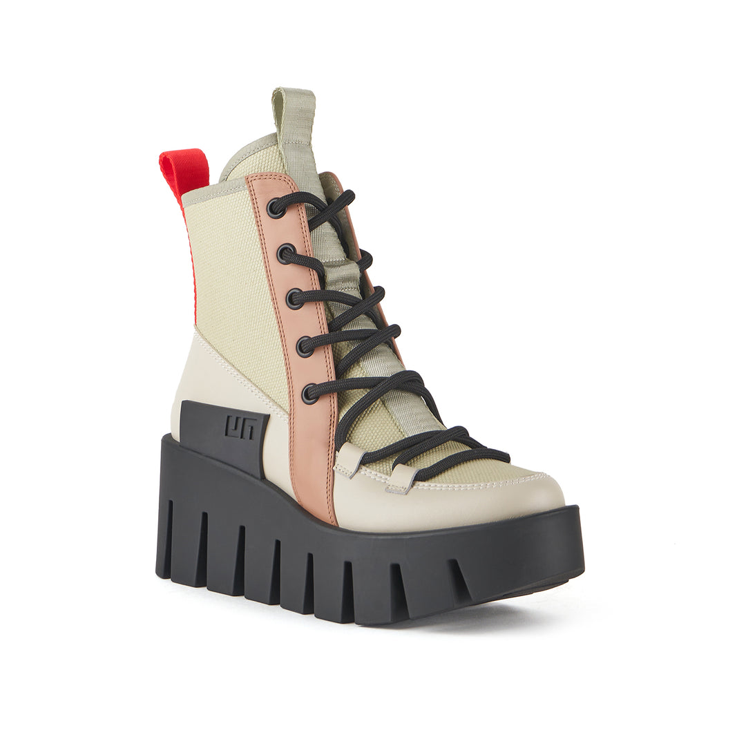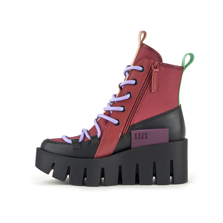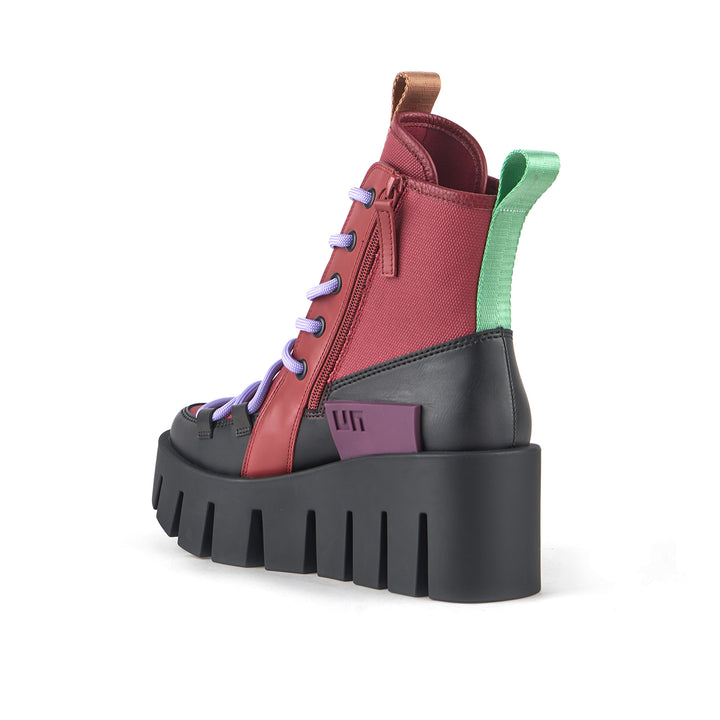 The Grip Explorer is a waxed canvas lace-up bootie with a platform lift, nylon straps, a statement logo block, and a defining lug sole.
