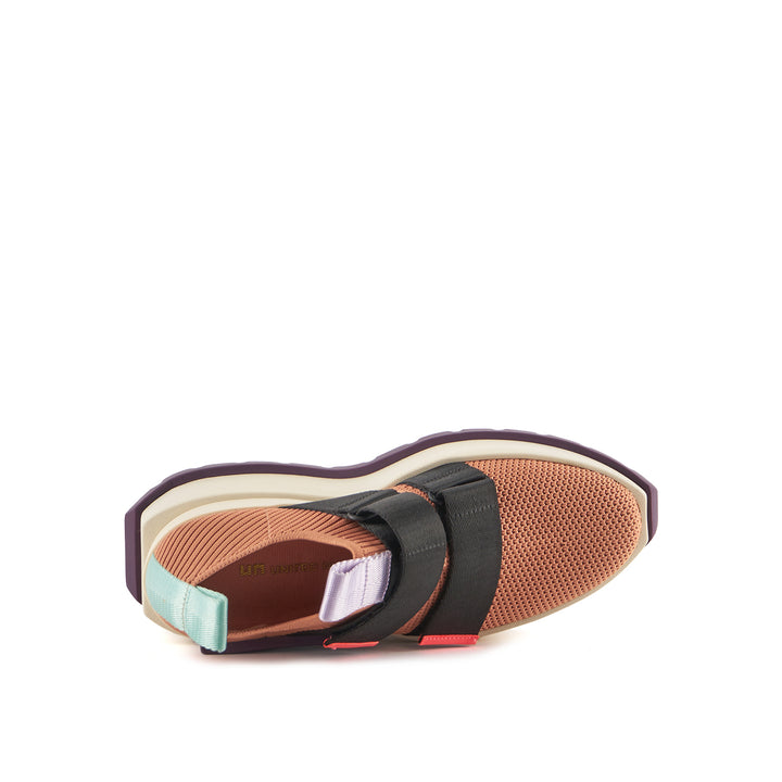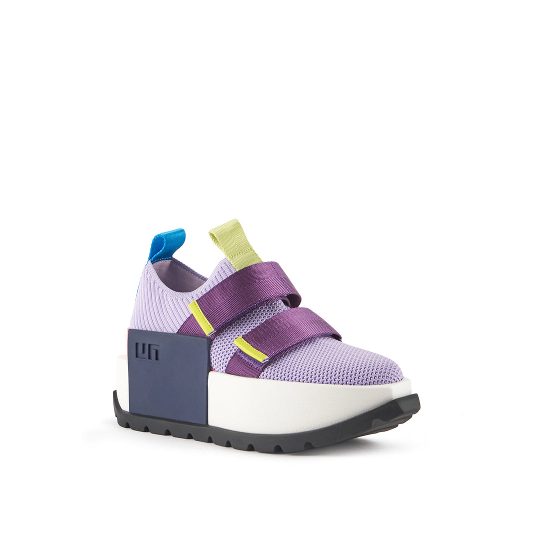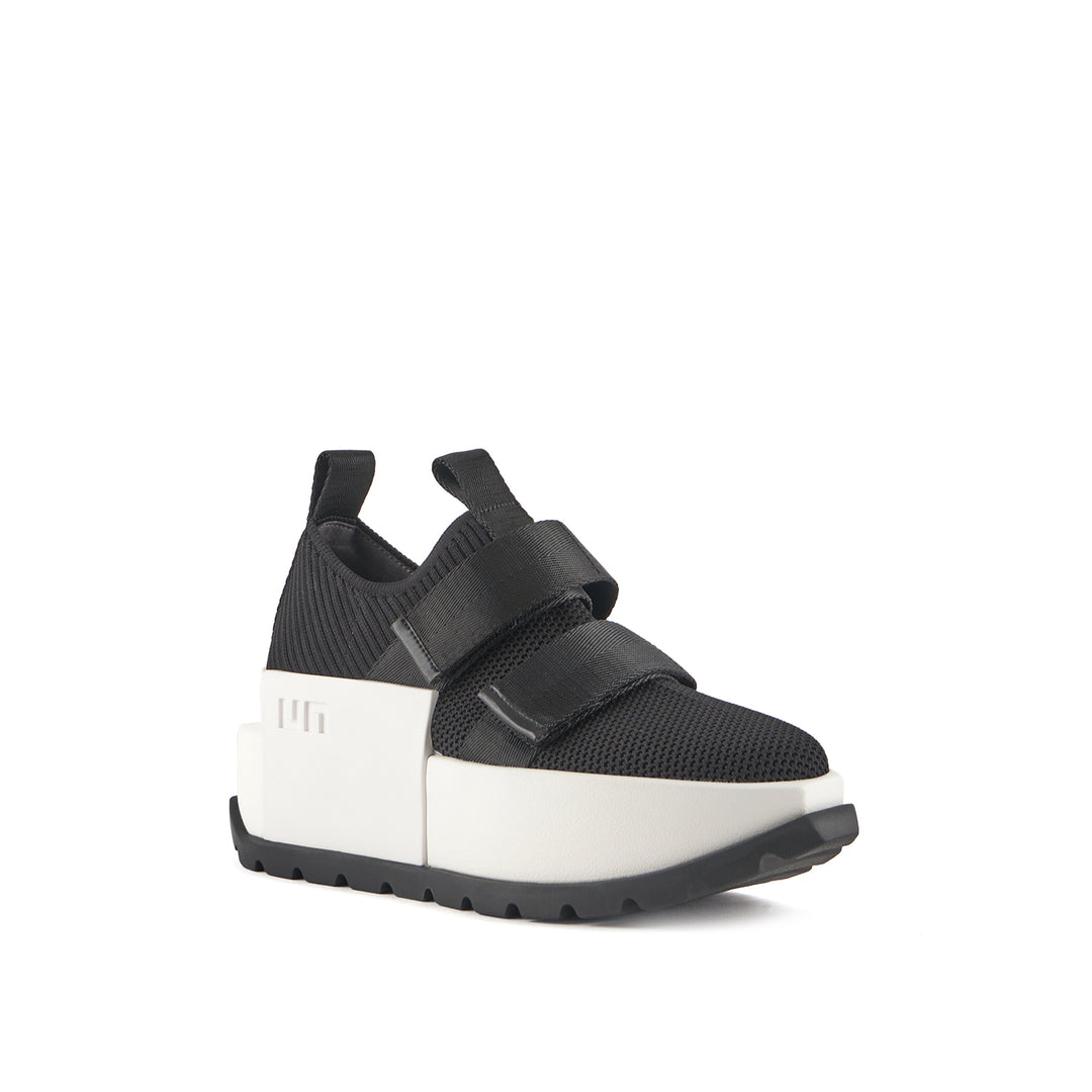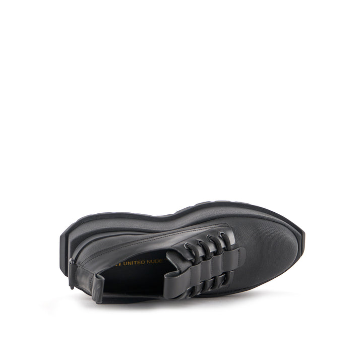 The Roko Run II is a wedge platform sneaker lifted by a bold cleated outsole. The geometric silhouette features UN's signature aesthetics, a woven fabric upper, adjustable velcro straps, signature pull-ups, and a defining block logo.
